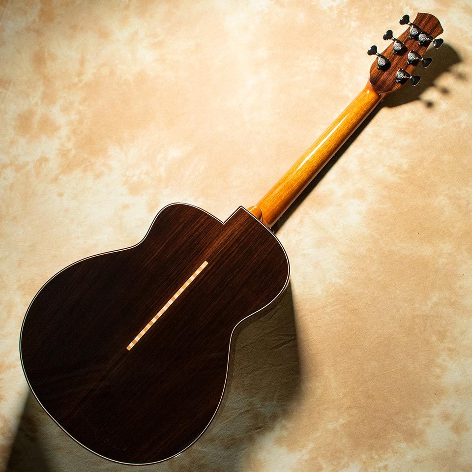 サイドバックにはインディアンローズウッド単板を使用し、豊かなミッドレンジと迫力のある出音に。