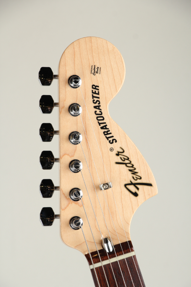 アッシュボディのメイプルネック / ローズウッド指板といった70年代を象徴するウッドマテリアル、適度に握りごたえのある"U"シェイプネックにラージヘッドストックを採用しております。ピックアップにはオリジナルの"Vintage-Style Single-Coil Strat"を搭載し、指板ラジアスはヴィンテージフェンダーよりもわずかにフラットな9.5インチラジアスを採用しております。Fキーと呼ばれるヴィンテージスタイルのペグ、ブロックサドル、3点止めネックジョイント、バレットナットといった70年代を象徴する特徴的な仕様を可能な限り再現したリイシュースペックとなっております。