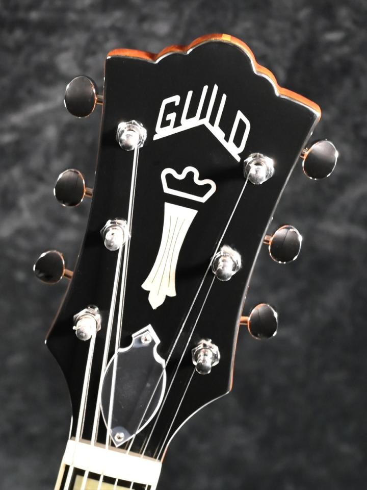 Guild(ギルド):「マーチンでもギブソンでもない第3のギター」として知られる1952年創業の米国のギターメーカー。重厚感がありボリュームのあるボディや目を引くヘッド・デザインが特徴。主なタイプはドレッドノート(D-25,D-35,D-40,D-50,D-55)、コンサート(M-20,M-40)、ジャンボ(F-20,F-25,F-30,F-40,F-55)、オーケストラ(OM)など。特にギルドの12弦ギターは有名。(Guild/ギルドのキーワード検索結果はこちら)
