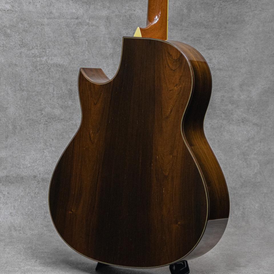 カナディアンアコースティックの代名詞的存在であり、今をときめく数多くの名ルシアーを輩出した”Jean Larrivee Guitars(ジーン・ラリビー)”。現在は米カリフォルニア州に建設された工房で生産していますが、過去Larriveeはリンダ・マンザー、ウィリアム・ラスキン、サーゲ・ディ・ヤングなど数多くの著名なルシアーが在籍しており、カナダ製ギターをもっとも世界に知らしめたメーカーのひとつ。もともと鉄弦ギター界にクラシックスタイルのボディを採用した元祖としても知られているカナダの名門で、1967年のスタートと長い歴史を持っています。本器は同社が30周年を迎えるにあたり100本限定生産にて生産されたアニバーサリーモデル、”C-10B 30th Anniversary Limited Edition Jacaranda”。19/100の1996年製USED品。トップには全面に柾目痕が浮でてゆらめく選び抜かれたカナディアン・シトカ・スプルース、サイド&バックにはセンターにしっかりと柾目を配した美しい杢のハカランダを採用。マホガニーネック、エボニー指板&ブリッジ、クロームロトマチックペグ、アバロンブリッジインレイ、クリアピックガード、アバロンロゼッタ&トリム、ローズウッドバインディング、シンメトリーブレイシング。ヘッドには30年歩みを振り返る"Woman in the Mirror”のインレイ、指板には美しい薔薇が彩るトーチインレイが、アバロン・MOPにて本モデル用のカスタムデザインが華やかに装飾されています。90度交角を持つシンメトリーブレイシングとハカランダが響かせるバランスのよい美しいサウンド。クリアで太い低音、煌びやかで芯のある高音、そしてそれらに埋もれないはっきりと響く中音。フィンガータッチでも十二分に野太く力強く反応してくれる極上サウンドをお楽しみいただけます。30年近くの経年を経たとは思えない美しいコンディションの本器。ボディトップのロウワバウト1限側に小さな打痕が見られる程度でそれ以外は傷なども見られず良好です。ボディトップ下部外周にほんのわずかにケースの色移りが見られますが、さほど目立ちません。ネックまわりもグッドコンディションで、弾きやすいアクションをしっかりと保っています。Larriveeギターの中で海外でも注目度・人気度の高いコレクターズアイテムの30th Anniversaryモデル。是非お見逃しなく要チェックください。オリジナルハードケース、シリアルマッチドのワランティなど新品時ドキュメント類が付属します。その他詳細はお問い合わせください。