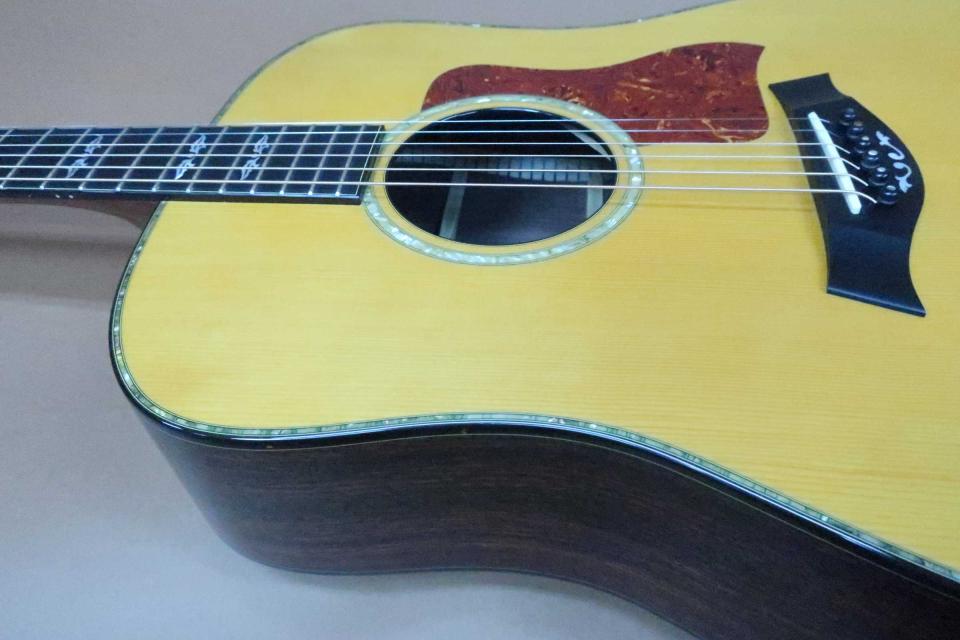 輸入代理店であった山野楽器からのオーダー品で1点物、Taylor Taylor 2011BTO DNE-ADS/RW Custom(Custom DN)の入荷です!1974年設立以来、世界中のミュージシャンやアーティストより高い評価を受け確固たる地位を築き信頼の厚いテイラーブランド。そんなテイラーへ、輸入代理店であった山野楽器がオーダーした(ビルト・ツゥ・オーダー/BTO)1点物のカスタム・オーダーモデル。トップには杢目の整ったプレミアム・アディロンダックスプルース単板、サイド&バックにはプレミアム・インディアン・ローズウッド単板、ヘッドにはオリジナル・ゴトー製510、マホガニーネック、エボニー指板&ブリッジ、トップにはアナロン・トリム、ベッコウ柄バインディング、アバロン・サウンドホール・ロゼッタ、オリジナル・フィンガーボード・インレイ&ブリッジ、ベッコウ柄ピックガード、グロス仕上げ、Expression System搭載のカスタム・モデルです。本器は、Taylor CTM DNE-BRZのハカランダ仕様のウッドマテリアルをローズバージョンにされ、DNE-BRZのナット幅を44.5mm を43mmへカスタムオーダーされたモデルだと思います。。DNE-BRZは中古市場でも軽く100万越えしております。