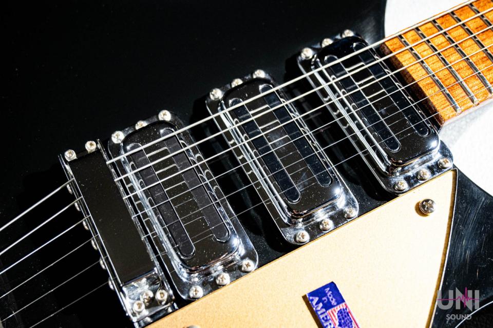 ブライトなサウンドが特徴の3つのトースターピックアップをマウントし、その3ピックアップの配線はフロントとセンターが並列になっており、セレクターは「リア」「リア+センター+フロント」「センター+フロント」の切り替えとなっており、これも3ピックアップのリッケンバッカーの特徴のひとつです。