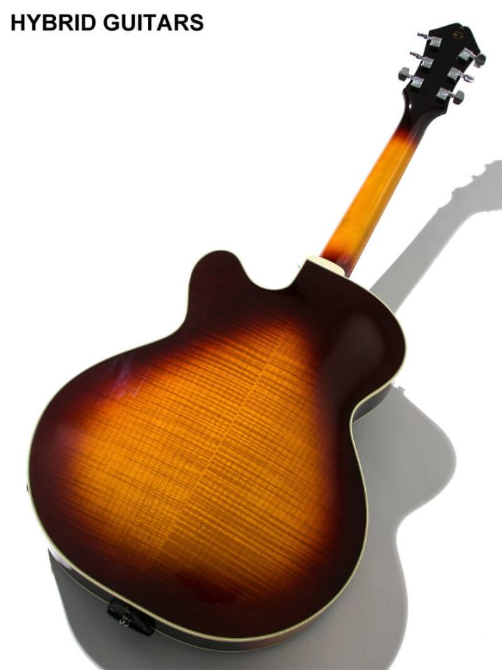 本機は通常使用による使用感がある程度で酷使された印象は無く、綺麗なコンディションです。ネックの状態も良好で、ナット、フレットの使用感も少なく、トラスロッドの順反り・逆反り方向共に余裕があり、電装系の状態も良好です。ストラップピンがシャーラータイプに交換されています。D'AngelicoやGibson L-5などのフルアコをお探しの方にもおすすめしたい1本です。