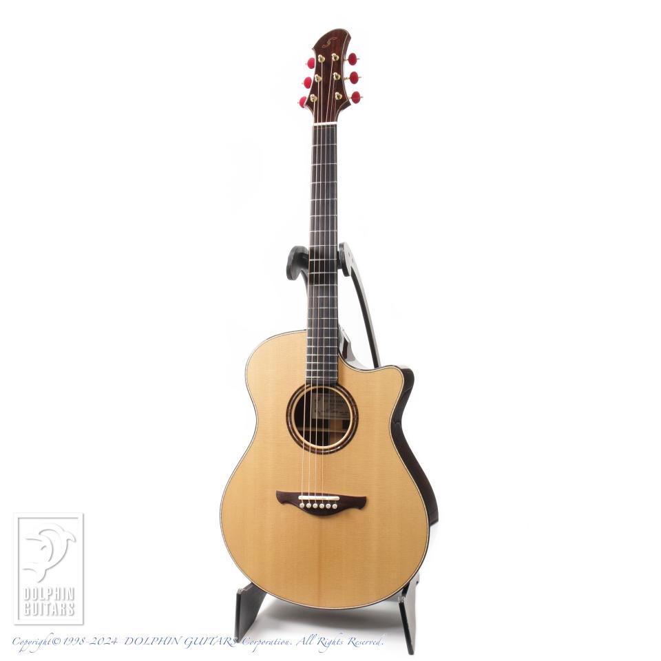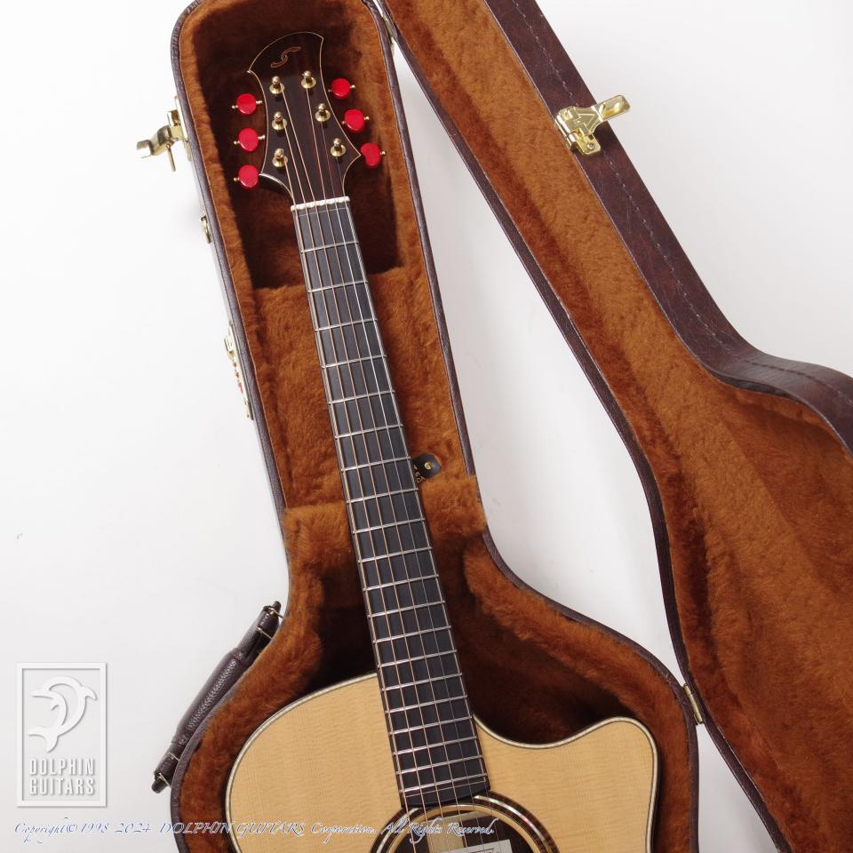 シトカスプルースとインディアンローズウッドというスタンダード材ですが、この木材が持つ特性を最大限に発揮させた素晴らしいサウンドの個体です。製作されてから4年ほど、さほど弾き込まれてはないようですが、鳴りや反応の良さ、音圧を感じさせ、一音鳴らすだけでこの凄みが伝わってくるでしょう。