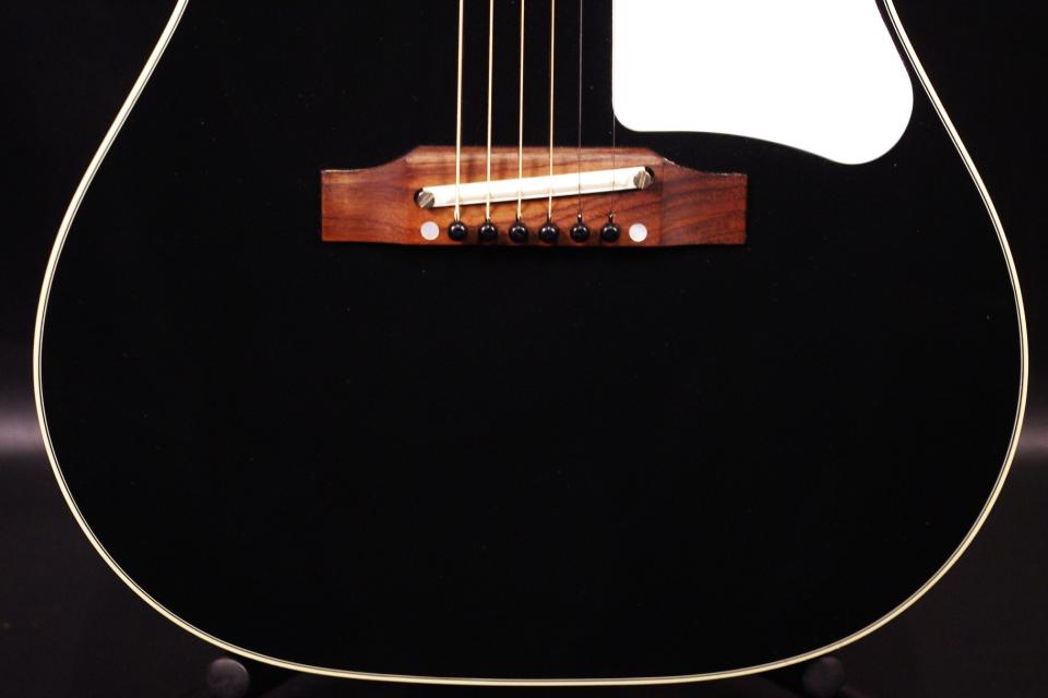 カスタムショップ製 B-25がブラックカラーで入荷しました!!トップはスプルース、サイドバックにはマホガニー、指板とブリッジにはローズウッドを採用、60年代後期に存在するレアカラーを再現したB-25!ナット幅も約40mmのナローネックで忠実に再現しています。J-45と比べると小ぶりで持ちやすく長時間の演奏も疲れません!!クルーソン製の3連ペグ、ロゴ入りのピックガード、ブリッジはオリジナルで残っています。ネックヒールへはストラップピンが打っています。以前にピックアップを取り付けしておりエンドホールが広がっています。現在はコンバージョン用のエンドピンで対応しています。シアリルナンバーから2018年製で細かい傷、使用感は出ていますが全体的に綺麗で存在感があります!!ネックのアングルも理想的でトラスロッドの動作にも余裕があります。フレットの減りもなく長期で安心です。弦高もハイポジションまで押さえやすく調整していますがお好みに合せた微調整にもお応えいたします。アジャスタブルブリッジのため歯切れがよく特にストローク中心で演奏される方におすすめでしょう!!ナローネックで探していた方はお見逃しなく!!オリジナルハードケース付き