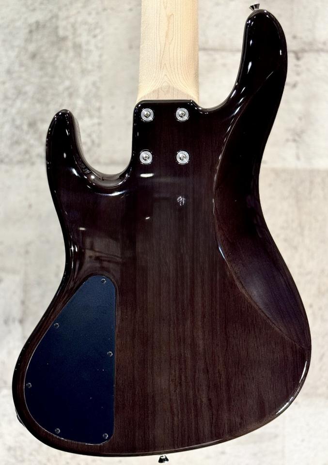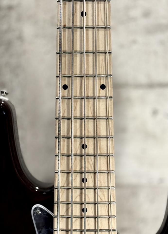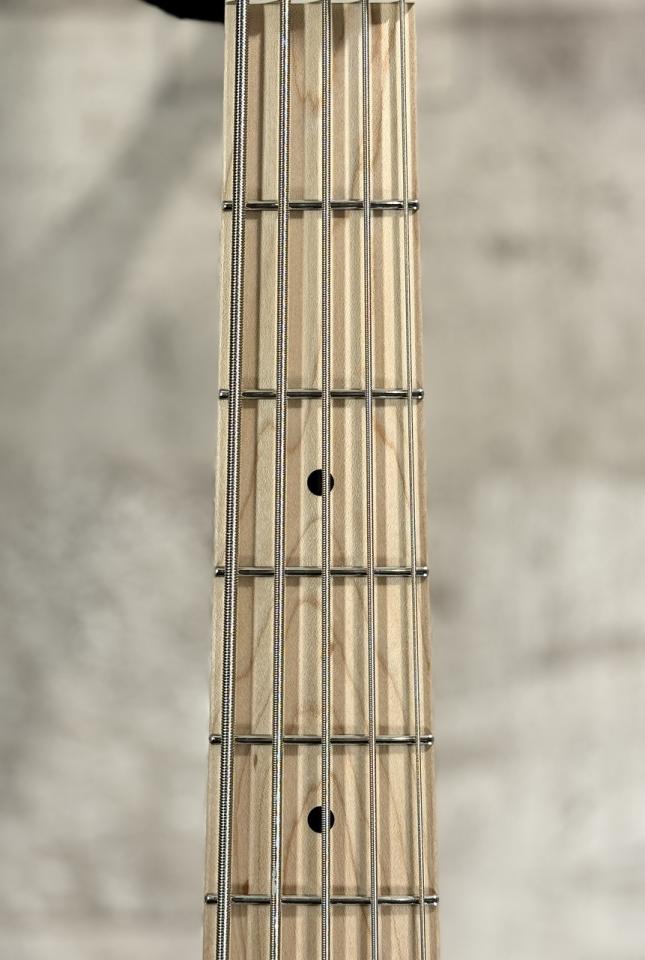 一般的な J スタイルよりも細くしたナット幅と、耐久性と演奏性を求め適度に厚みを残し、握りこみ易くしたネックグリップにより、ローポジションからハイポジションまで、そしてネック幅のワイドな5弦のミュートもスムーズに演奏することができます。