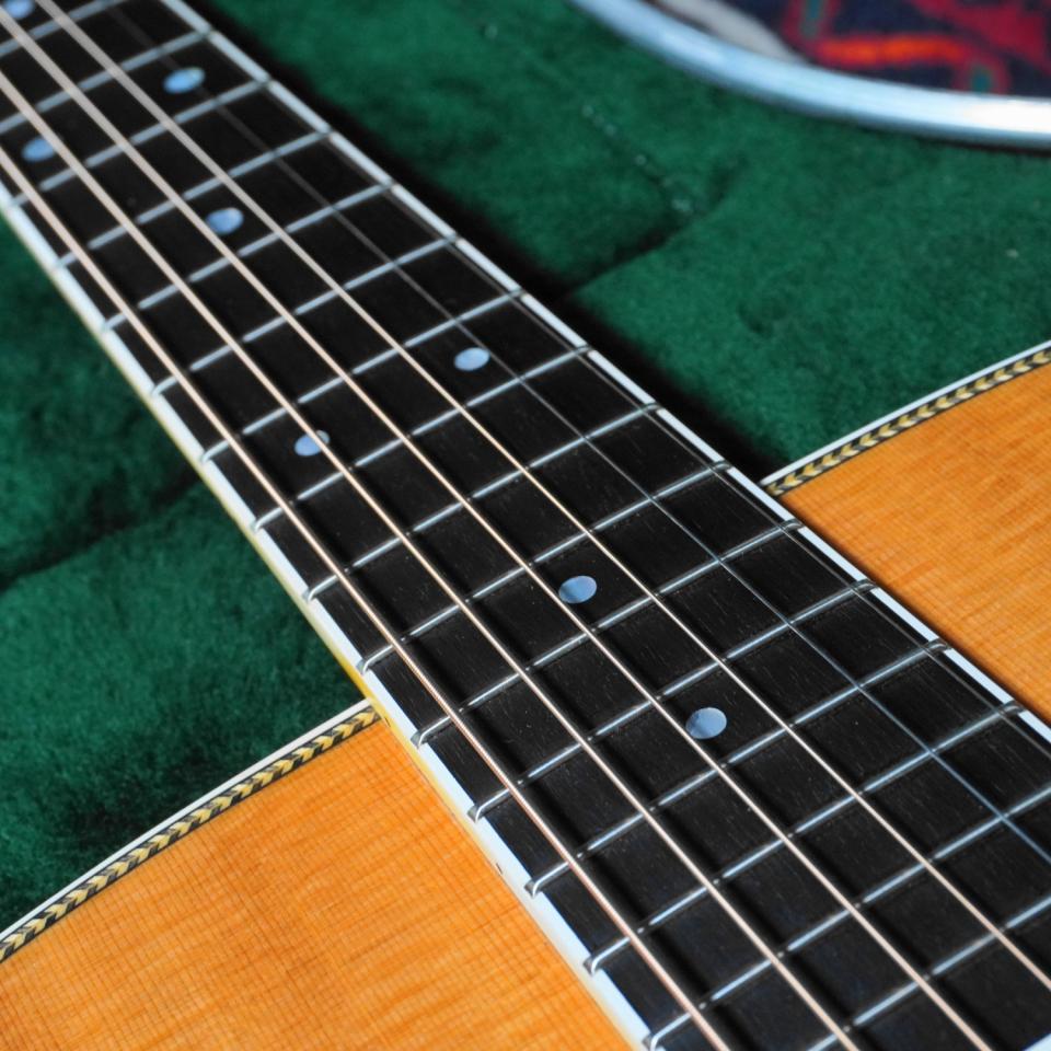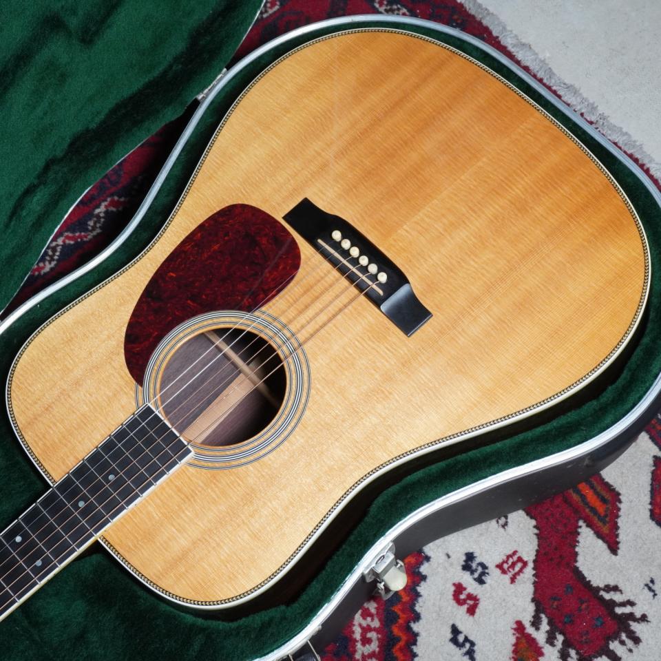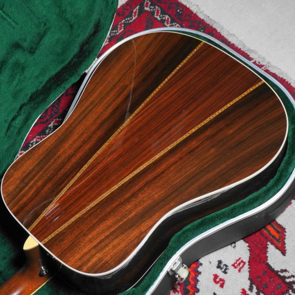 ボディトップのヘリンボーン・バインディングが特徴的なHD-35。サウンド面においてもスキャロップド・ブレイシングによる鳴りの良さで人気のモデルです。今回入荷したのは1998年製の1本。コンディションは極上で、ネックにピン打ち、ネック裏には軽度のへこみ傷がございますが、製造から27年が経過しているとはとても思えない非常に綺麗な外観を保っております。フレットに関しても殆ど減りは無く、ロッドは硬めですが現状ネックに問題は無く、弦高も6弦12フレット上にて2.5mm、1弦側が2.0mmと適正。サドルの高さも充分ございます。
