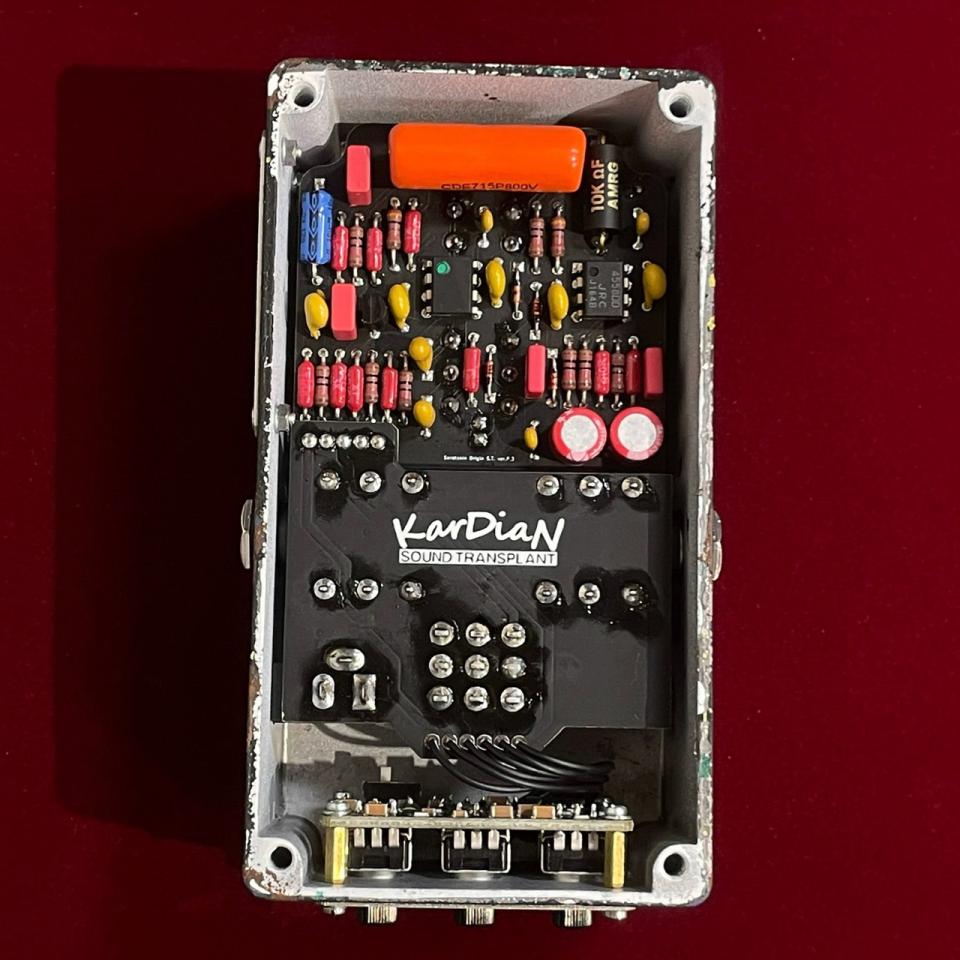 田村氏とKarDiaN北田による二人のエンジニアの回路設計、そしてKarDiaN北田の所有するMaxon OD-808 Narrow, Maxon OD-808, Ibanez TS-808 Narrow, Ibanez TS-808, etc...これら全て、そして複数台の同機種を研究し二人のエンジニアが死力を尽くしたペダルが誕生したのです。
