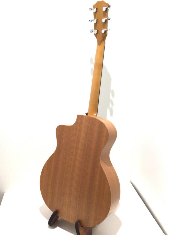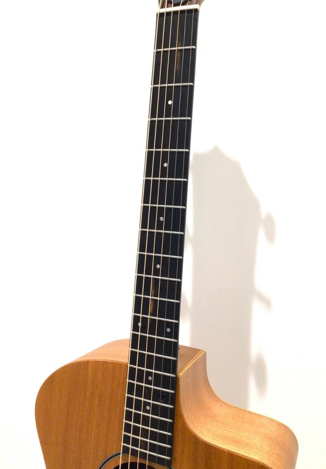 全音域を通してバランスよいフルサイズのグランドオーディトリアムボディを持ちつつも、ネックジョイントにBaby Taylorに採用されているシンプルなタイプを採用することによりお求めやすい値段を実現。