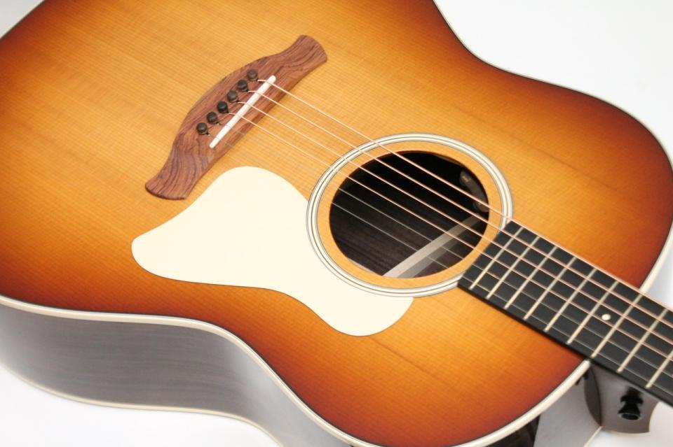 こちらのGrand Pacificシェイプはわずかに厚みが加えられ、より低音の量感が増しています。ドレッドノートシェイプの豊かな低音域を好むプレイヤーにとって非常にうれしい変更点です。