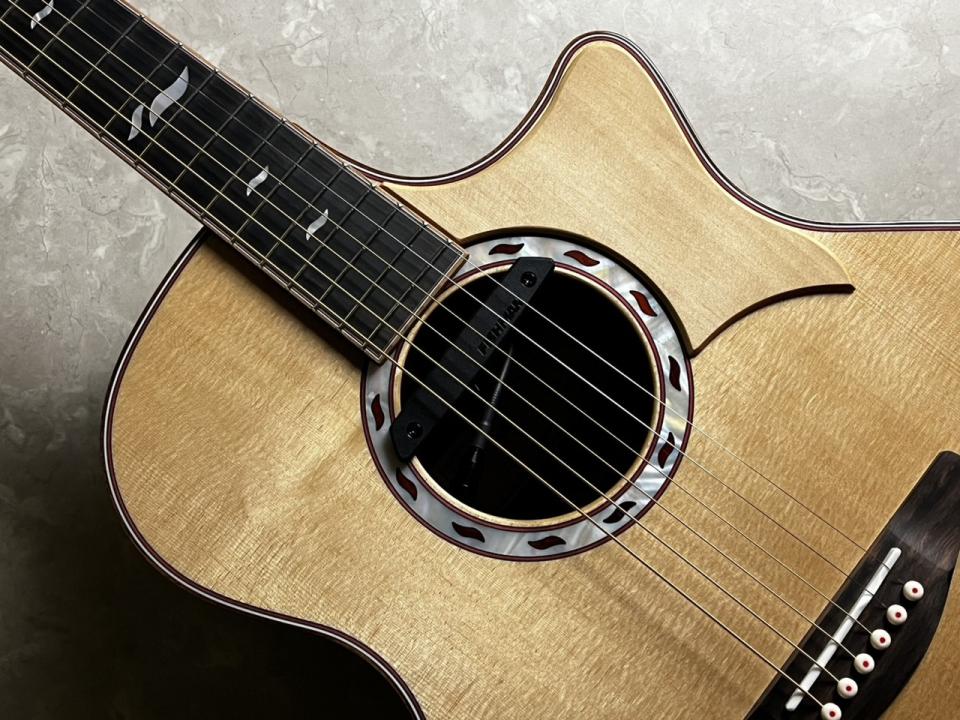 MARCINが愛用していたIbanez AEモデルを元に、ボディ・タップすることを前提に強化したIbanez X-Mブレーシングとスクラッチ・パッドを採用したシグネチャー・モデルです。ロゼッタやインレイ、ブリッジピンのデザイン面のみならず、マグネティックとマイクとをブレンドできるFishmanRare Earthピックアップ&プリアンプや安定した動作とスタビリティで定評のあるGotoh SGS510Zマシンヘッドなどハードウェア面にも彼のこだわりが込められています。