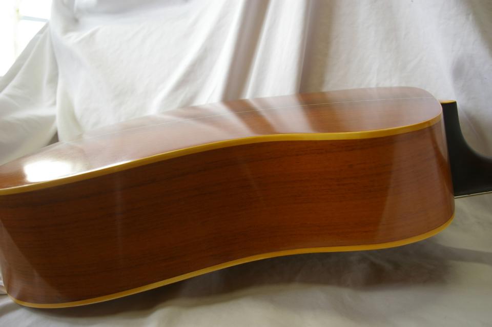 トップはスプルース(エゾ松)単板、サイド・バックはローズ・ウッド。指板はおそらくエボニーです。