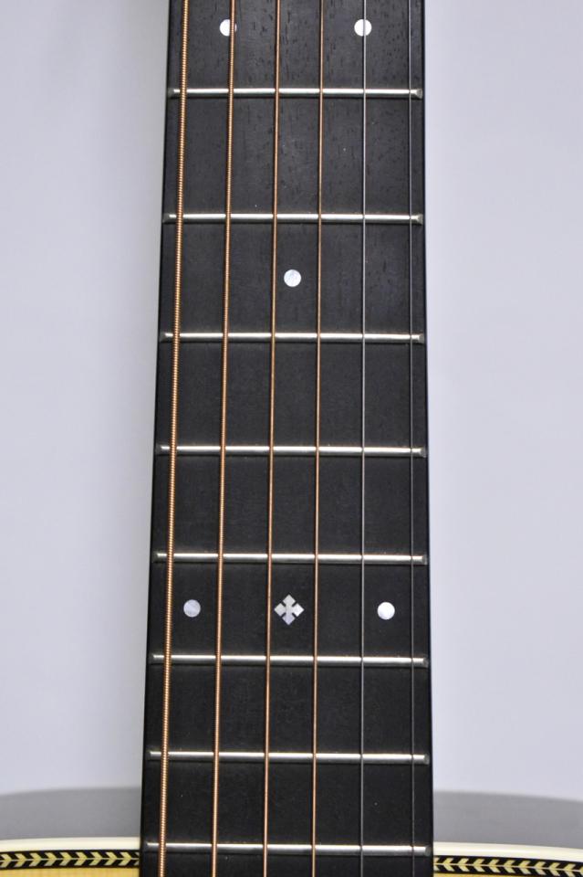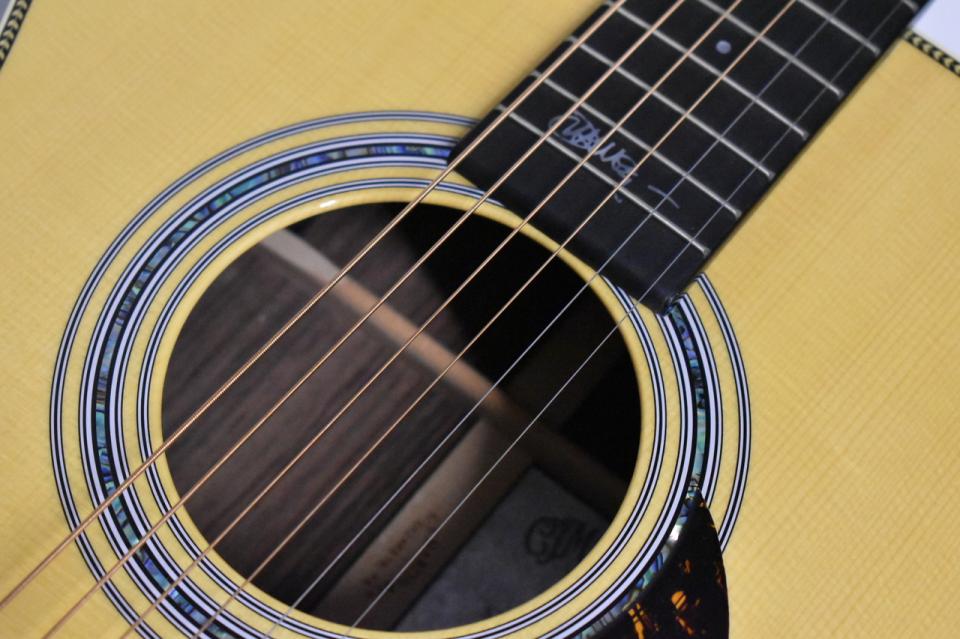 OM(オーケストラモデル)のナット幅は通常44.5ミリとなりますが、こちらのモデルはオーケストラモデルでありながらも42.9ミリとナット幅が狭い仕様となっているのもこのギターの大きな特徴となります。普段はエレキギターを弾いている方や、しっかりとネックを握り込むプレイヤーにもオススメです。