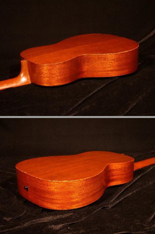 コンディションは経年による使用感やリペア歴がございます。ボディトップブリッジ下とボディサイド1弦側に各リペア歴がございます。裏止めされておりしっかり接着されています。その他ヘッド先端の打痕、ペグのサビ、ボディトップやバックエッジ部等に当て傷、ウェザーチェック(特にボディトップ)がございます。