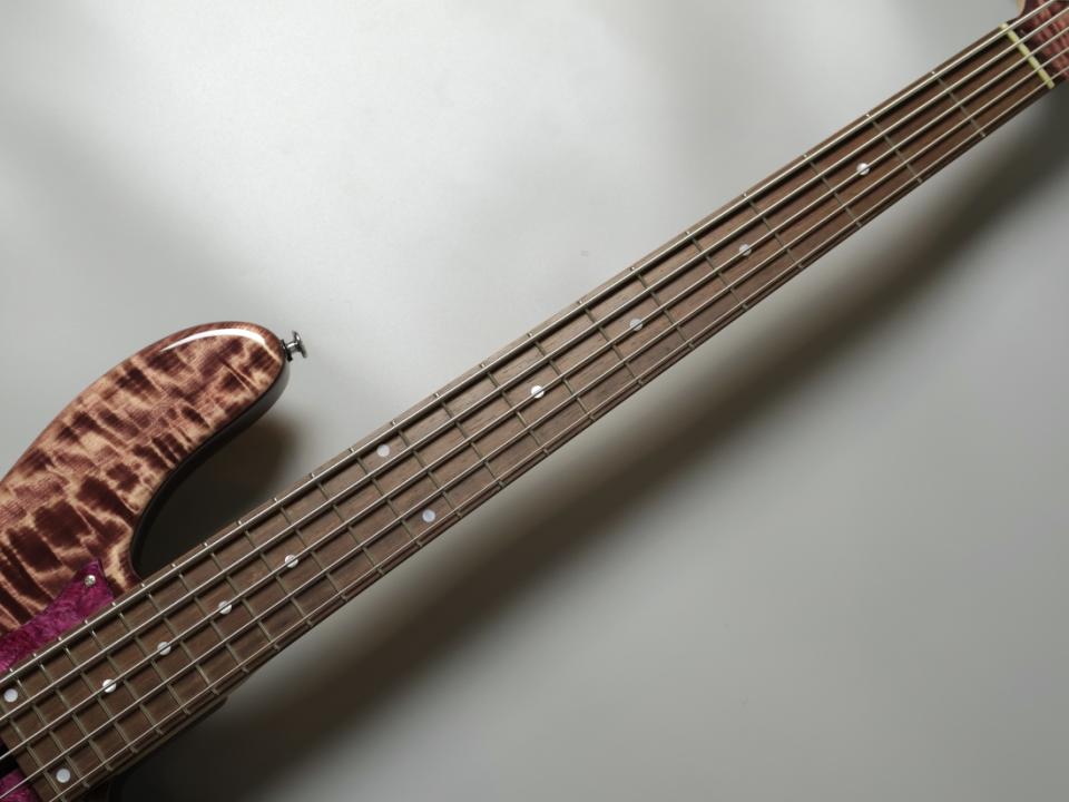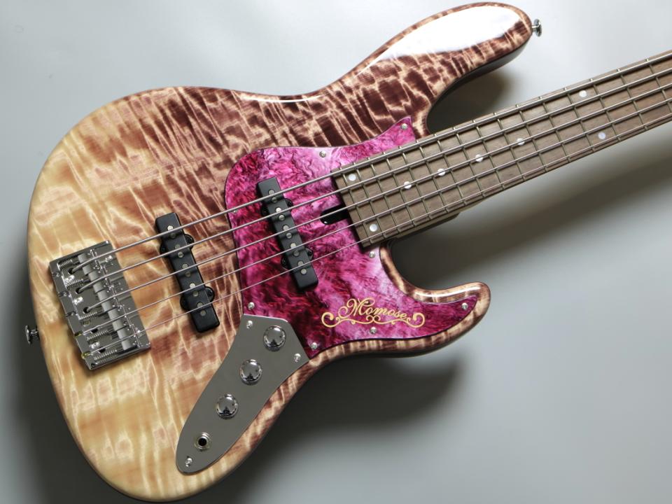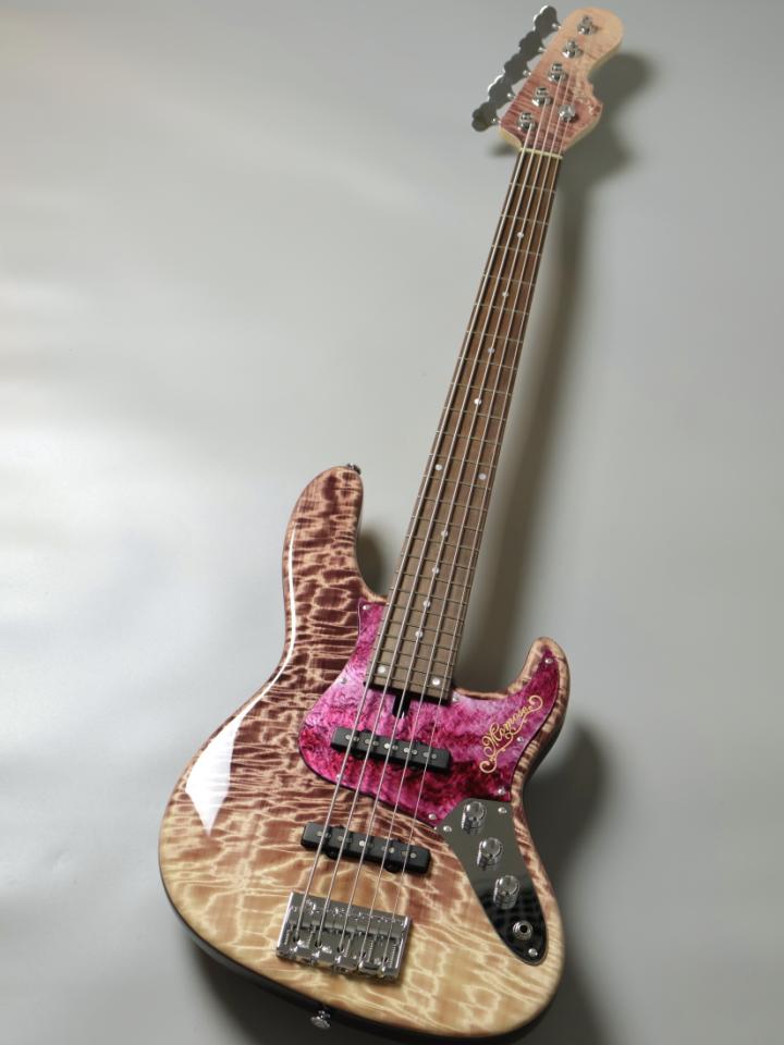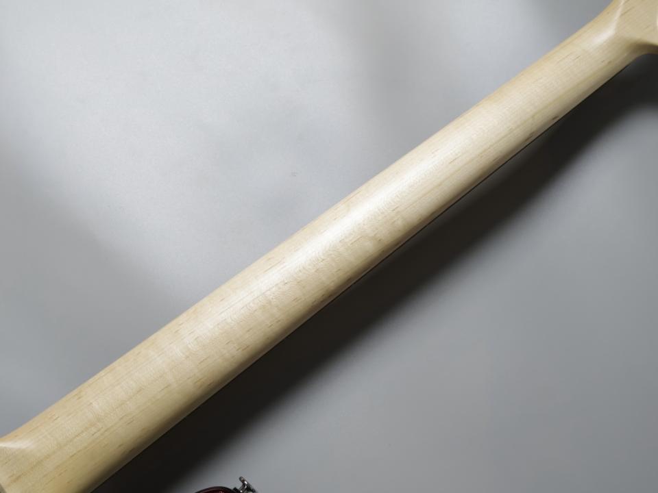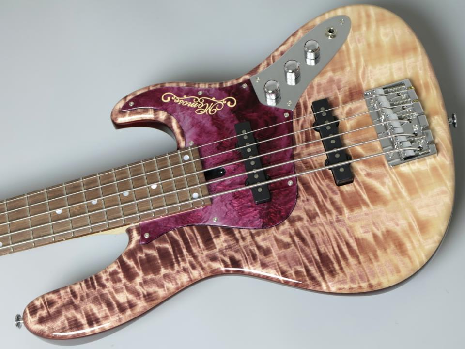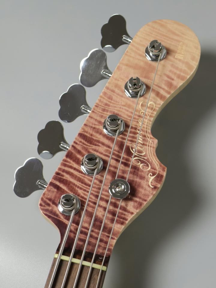 和材として人気の高いトチ材をボディに使用した一本です。トップ材には美しいフレイム杢目を有した個体を選定し、バック材にも同じくトチを採用しています。ローミッド?ミッド付近が明るく抜けてくるような程よくソリッドなトーンを持ち、重心の低い位置から響く心地よいサウンドが特徴的。ベースに使用された場合は、ジャズや歌モノなどのメロウなジャンルでも活躍します。
