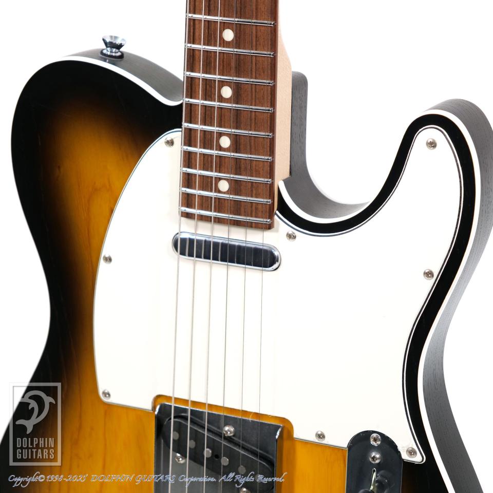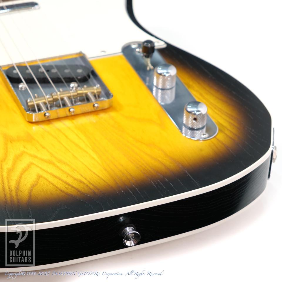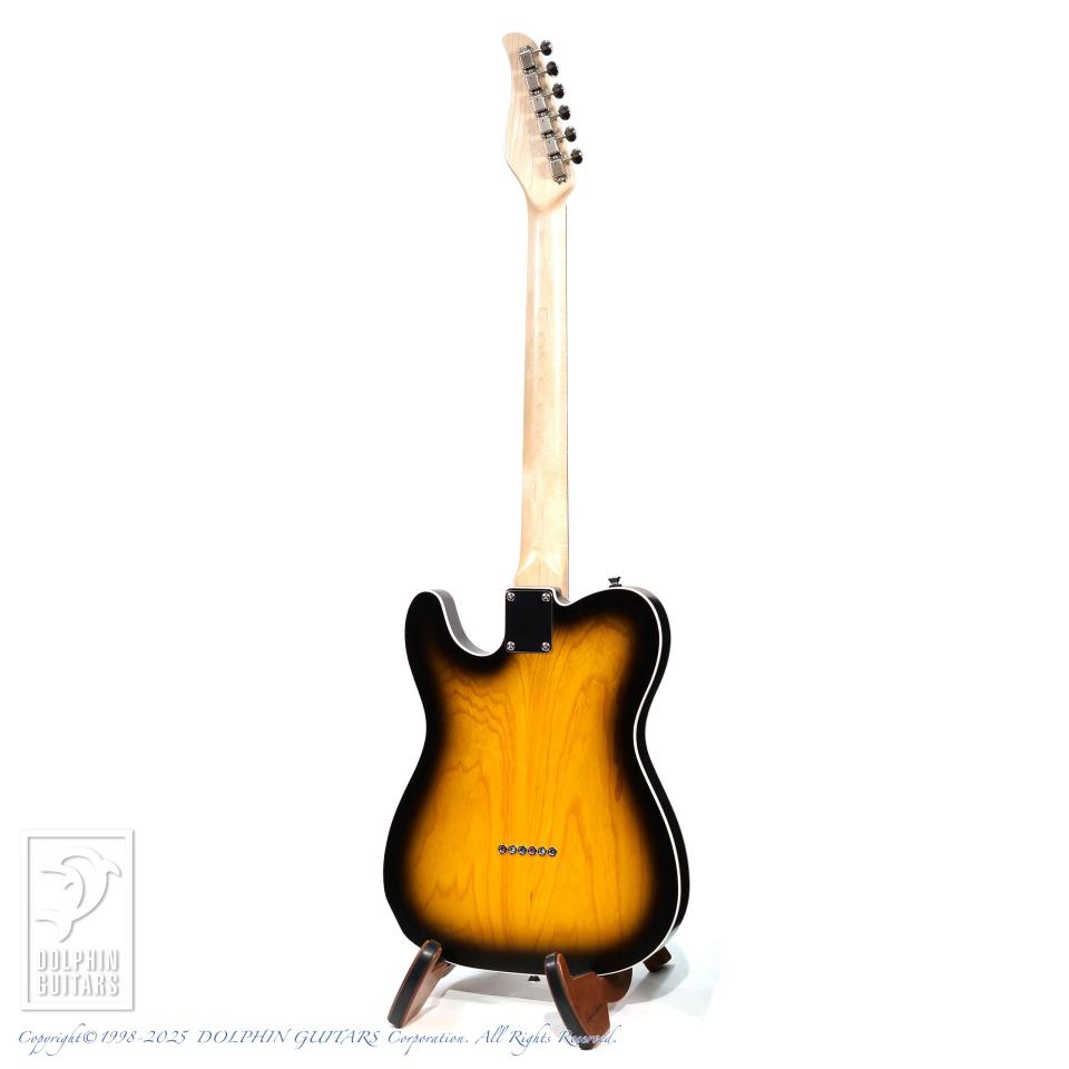 本器はテレキャスターカスタムのルックスに、トップにオープンポア・ラッカーフィニッシュ、2トーンサンバーストのカスタム品、M-TEE Custom (Open Pore 2TSB)。