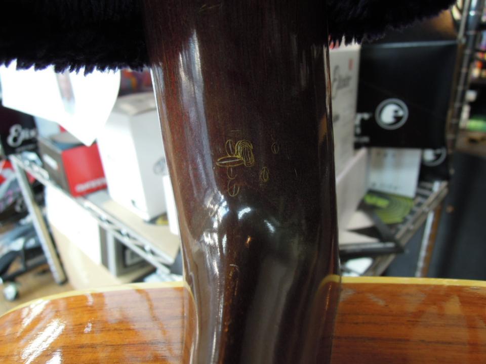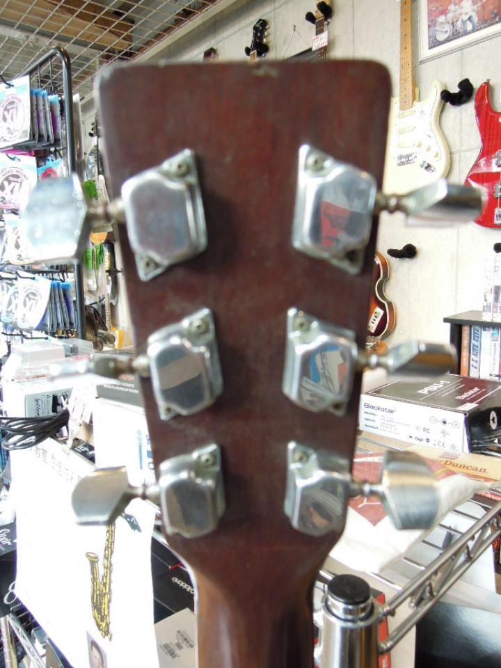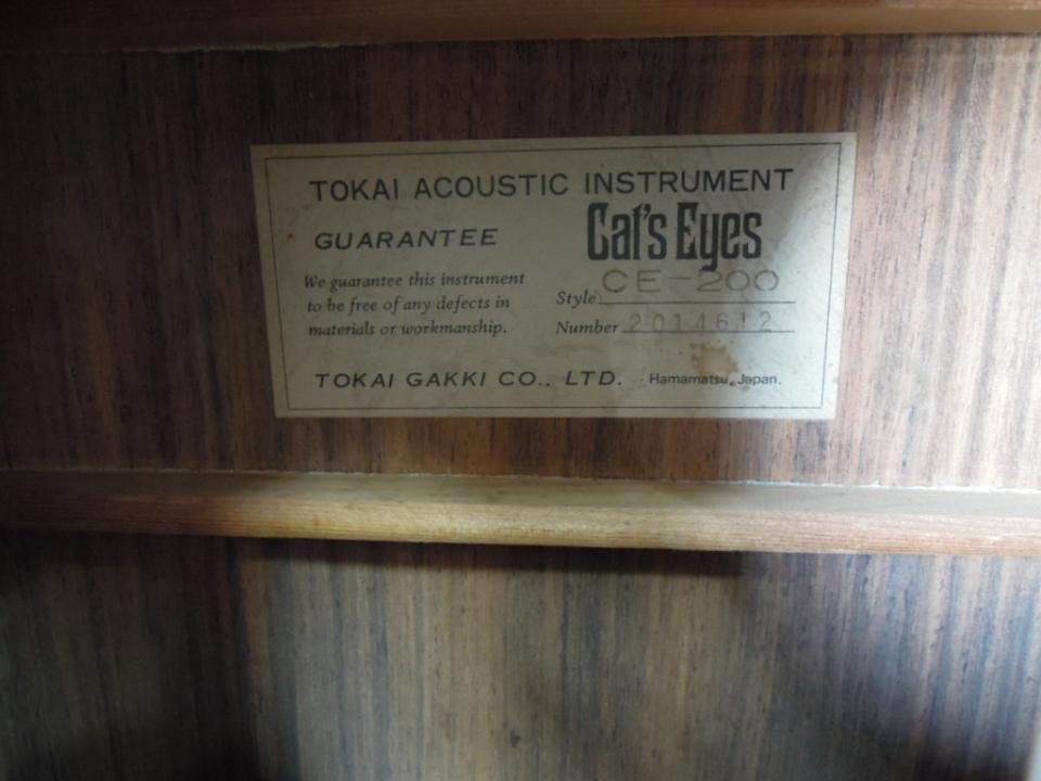 トーカイ・ギターのキャッツアイCE-200。製造年は1970年代のギターで、ネックの反りもなくフレットの減りも殆ど見れない状態での入荷です。打ち傷はネック裏やボディトップにいくらか見れますが大きいダメージは無く十分これからも使用できるギターです。ナットやサドルは交換されていますが出音が大きくストロークやフィンガーピッキングのどちらも楽しめそうです。■ボディ・トップ:スプルース■ボディ・サイド&バック:ローズウッド■ネック:ナトー■指版:ローズウッド(20F)■ナット幅:43.2mm■サドル:タスク(黒)■弦高:1弦12F=2.75mm、6弦12F=2.75mm■ソフトケース付属