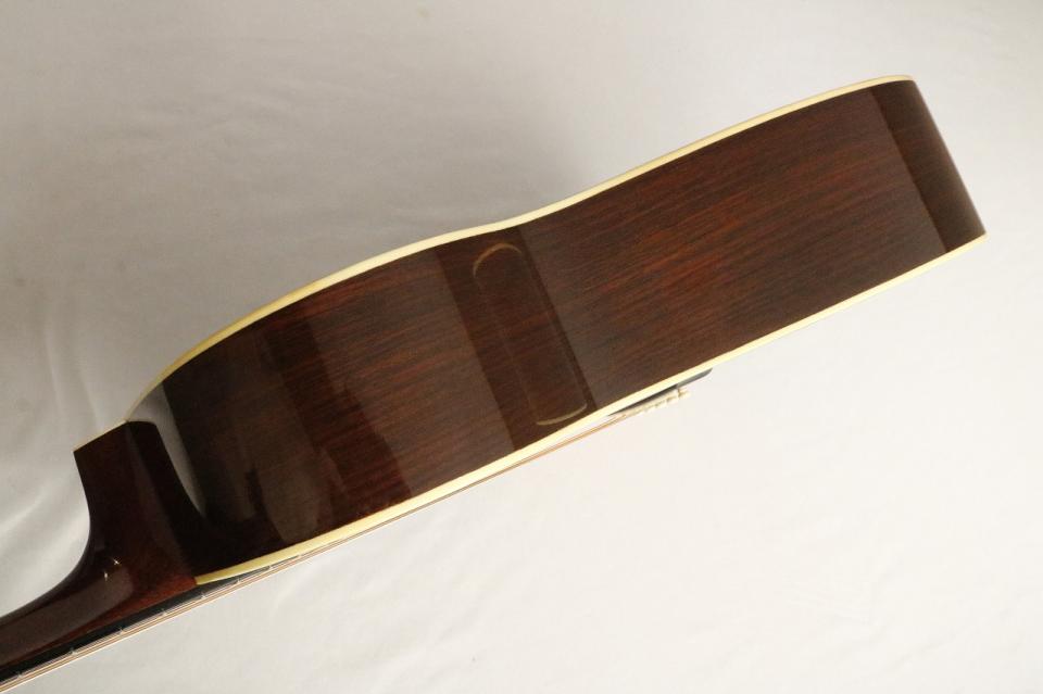 製造から20年経過した個体となりますので年代相応に小傷が多数あり、トップには木部に達しないまでもうち傷がいくつかございます。しかしながら大きな割れ等無く演奏性においては状態良好と言えます。ネックは概ねストレート、12フレット上弦高は6弦側約2.5mm、1弦側約1.6mmサドル残量は6弦側約2.5mm、1弦側約2.0mmとしっかり調整がなされており、非常に弾きやすい設定になっております。グレードの高い木材を使用しビンテージに近い太めのネックを採用することで音粒がそろった、コードを鳴らした際にしっかりと弦1本1本の音がハッキリと鳴っている印象です。特にこの個体は年代相応の状態変化は感じられますがしっかり大切に調整をされながらも弾きこんでいたことが感じられる1本です。新品入荷すると数日で販売となる人気商品となっており中古市場でも非常に人気の高いモデル。是非この機会にご検討下さいませ。