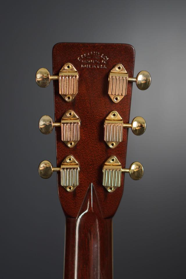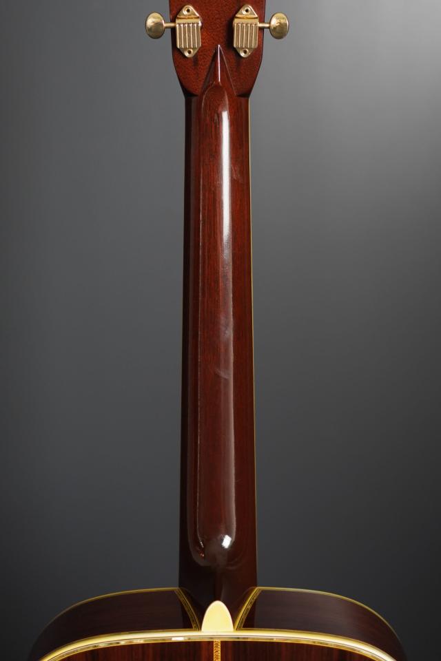 45スタイルですので通常はヘキサゴンインレイなのですが、本機はスノーフレイクスとダイヤモンドの指板インレイ、ヘッドにはトーチインレイが入り、ヘッド裏に刻印も入った、かなりレアな仕様です。