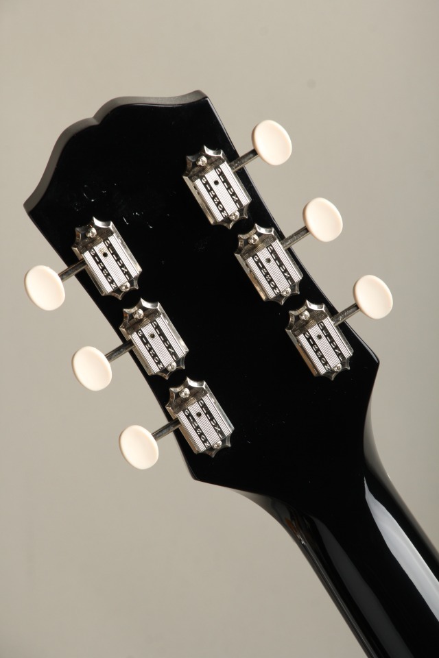 左右対称のダブルカッタウェイボディに、初期の Epiphone CASINO と同じくカラマズーヘッドにメタルプレートロゴ(ビキニバッジ)を採用した特徴的なデザインとなっております。マホガニーボディのマホガニーネック / ローズウッド指板といった伝統的なウッドマテリアル、1.695インチとややワイドなナット幅、握りこみやすいスリムテーパーネック・プロファイル、1.375インチとわずかにスリムになったボディ厚を採用するなど、全体のバランスを考慮しながらも軽量化を実現しております。ピックアップにはレスポール・スペシャルやレスポール・ジュニアなどでおなじみのソープバータイプの P90 ピックアップを搭載しております。コントロールはマスターボリューム / マスタートーンのみといったシンプルな構成となっており、アンプのつまみのような特徴的なノブが搭載されており、このモデルならではのクラシカルな雰囲気をまとった Epiphone の伝統的なモデルでございます。