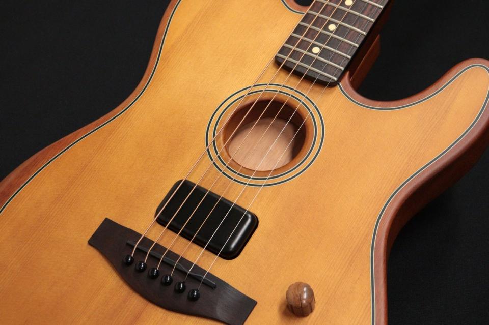 Fender Acoustasonic Shawbucker™、Fishman®アンダーサドルトランスデューサーの2ピックアップ構成
