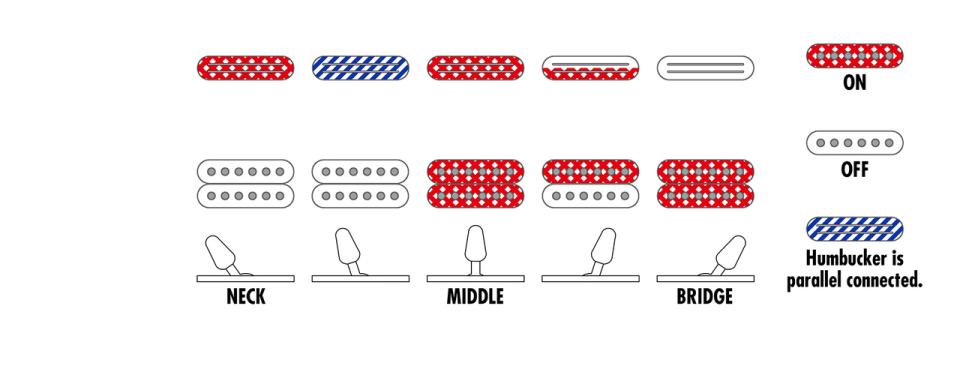 また、5WAYピックアップセレクターによる多彩なサウンドバリエーションも健在で、ハーフトーン時にはコイルタップサウンドやパラレルサウンドが得られます。