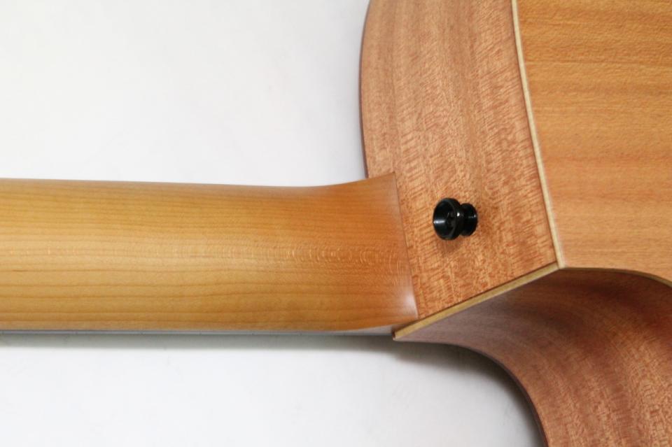 全音域を通してバランスよいフルサイズのグランドオーディトリアムボディを持ちつつも、ネックジョイントにBaby Taylorに採用されているシンプルなタイプを採用することによりお求めやすい値段を実現。