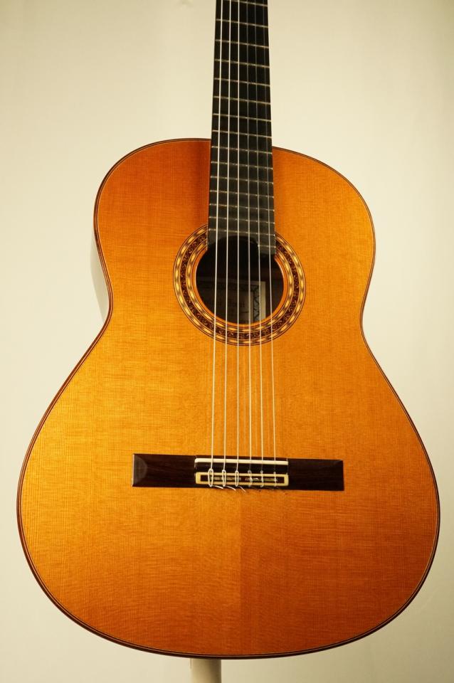 高校卒業と同時にギター製作家中出輝明氏に師事。1971年自身の工房開設。1975年頃からヨーロッパ、アメリカなど諸外国へ輸出を開始。国内外トッププレイヤーに愛用されています。