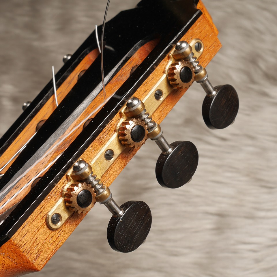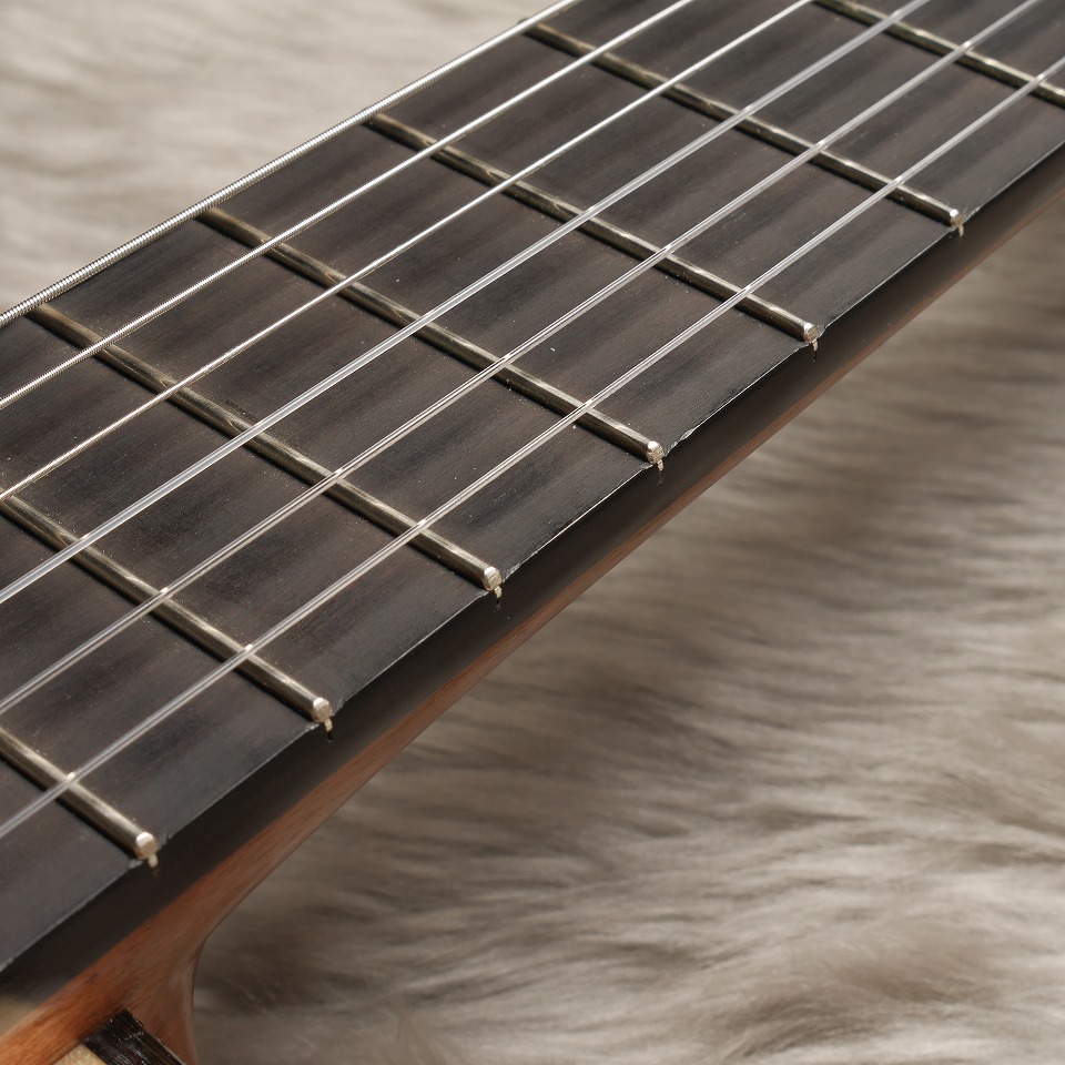 セミレイズドフィンガーボードの採用により、高音域の操作性が向上。さらに特注仕様として細めのネックにトラスロッドを埋め込んでおり、手の小さな奏者にも扱いやすく、長期的なネックコンディションの安定性も確保しています。