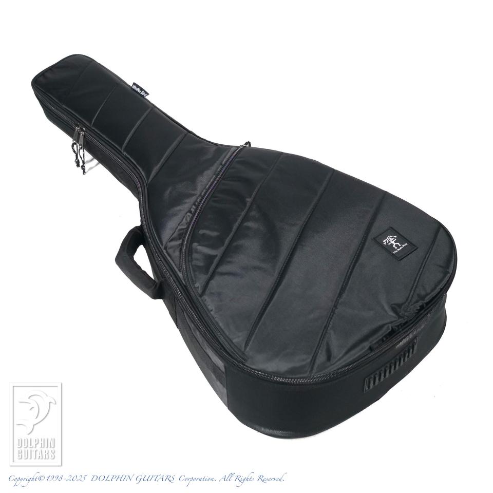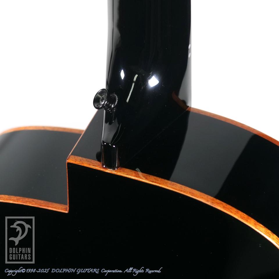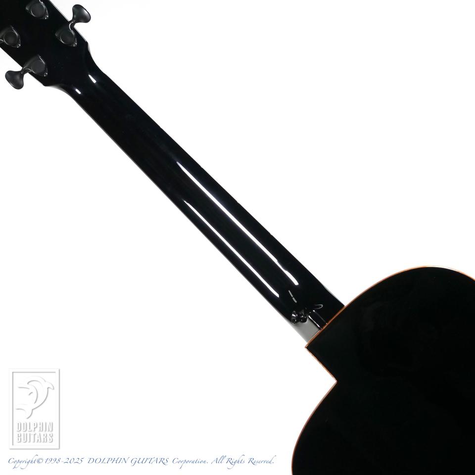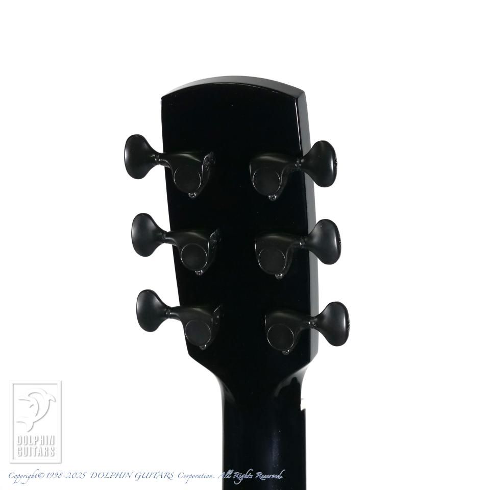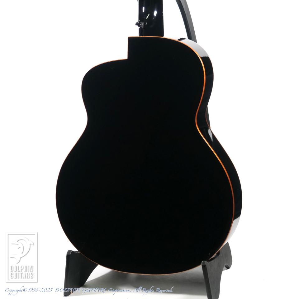 カーリーメイプルをセダー材の表面に配した美しいギター。シースルーブラック塗装により、杢目が浮かび上がるような幻想的な印象を与えます。サイド&バックはほのかにラメが輝く凝った仕様です。
