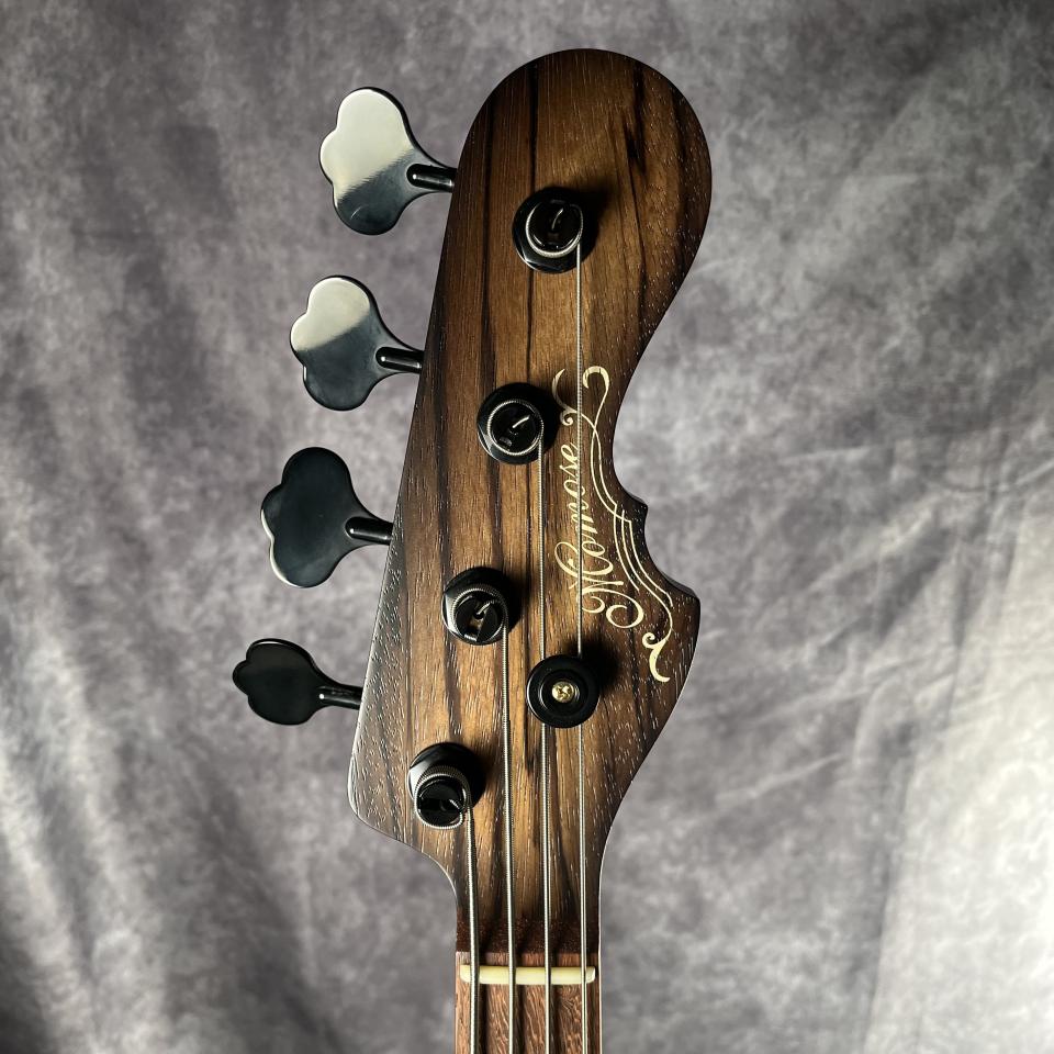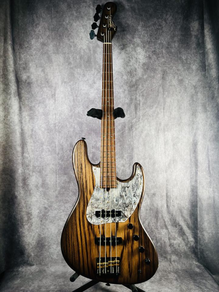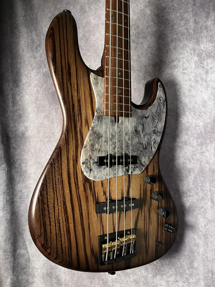 ネックにはクォーターソーン・メイプル、指板にはダマスカスローズウッドを使用し、ピックアップにはMojotone / Aguilarをマウントしており、輪郭の明瞭さと豊かな表現力を兼ね備えた、他に代えがたいサウンドキャラクターを実現しています。