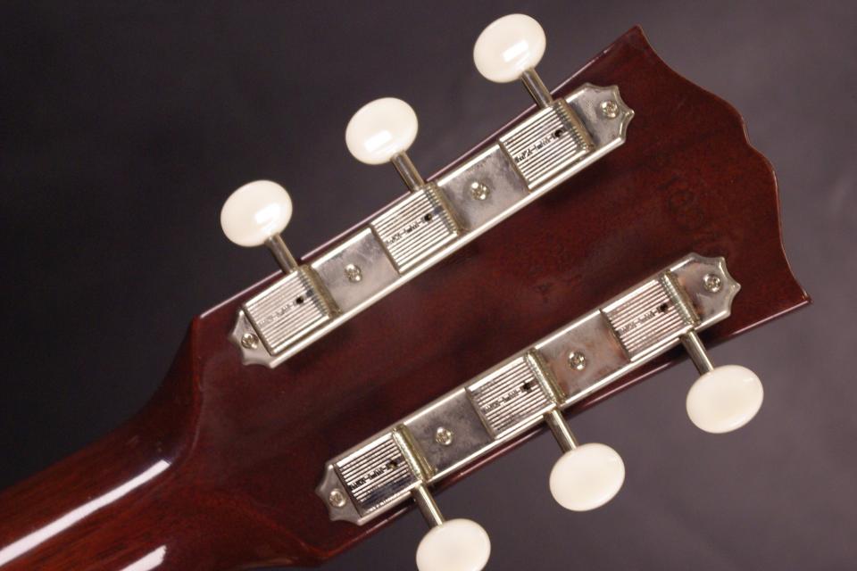 1950年代ラージピックガード期のJ-45を復刻した1950s J-45が入荷しました!スプルーストップ、サイドバックにはマホガニー、指板とブリッジにはローズウッドを採用したギブソンを代表する人気ラウンドショルダーモデル!シリアルナンバーから2020年に生産さえた個体でクルーソン製の3連ペグ、ラージピックガード、ブリッジなど主なパーツはオリジナルです!所々に細かい傷はありますが全体的に綺麗で演奏性がよく安心してお使いいただけます。ネックヒールへはストラップピンが打っています。LRBaggs社のiBeamピックアップが搭載されています!ナット幅は約43mmくらいの50年代らしいやや太めのグリップです。ネックのアングルも理想的でトラスロッドの動作も問題なく機能しています。フレットの減りも少なく長期で安心いただけます。弦高は12フレット6弦側で約2.5mm、1弦側で約1.7mmの高さで調整しています。サドル側での微調整も十分可能です!60年代仕様と比べると野太く深みのある低中音が魅力です!フィンガーピッキングからストロークまで幅広く応えてくれます!!是非この機会にお試しください!ギブソン純正ハードケース付き