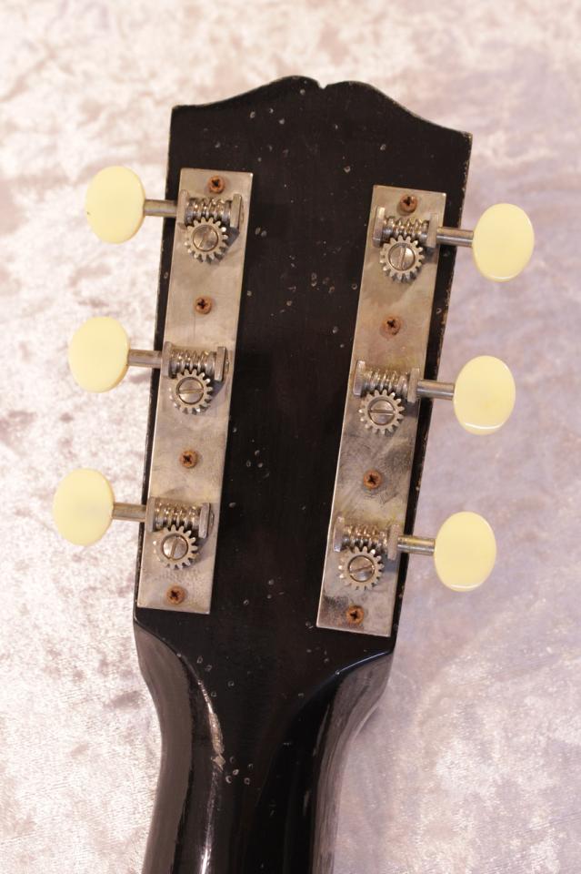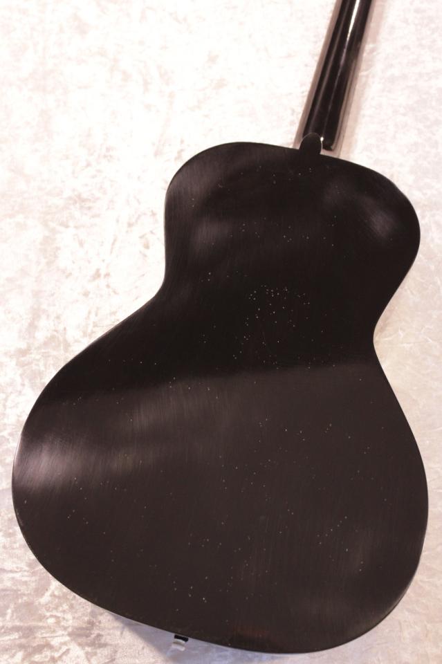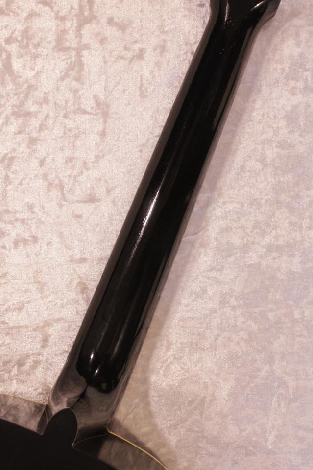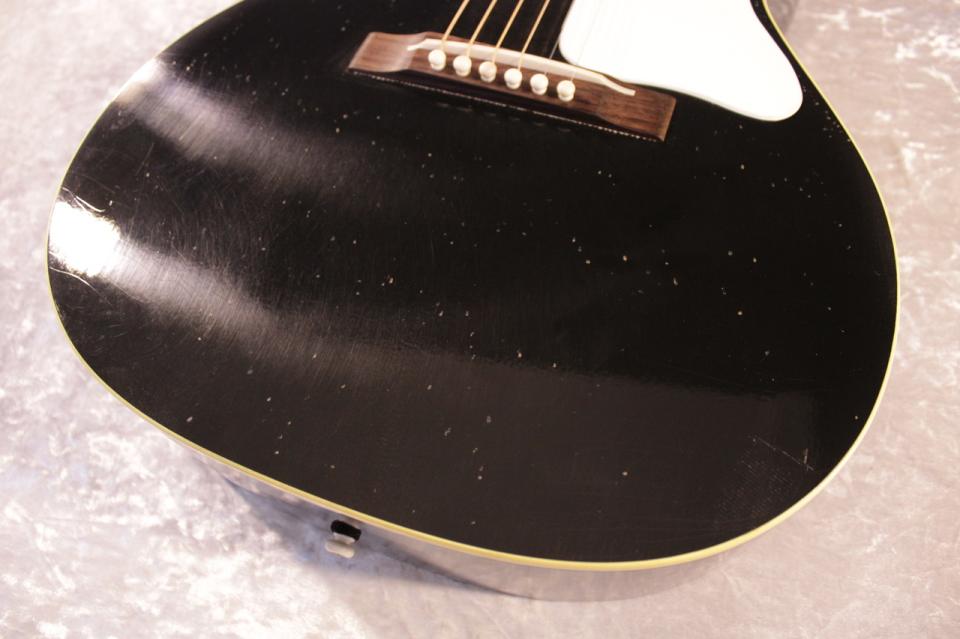 黒のフィニッシュに覆われているため木目は表からは見えませんが、光に透かすと凹凸が浮かび上がり、確かに生きた木材であることを感じさせます。トップには1部ケースの内張りと反応したと思われる痕があり、単なる傷ではなく、ヴィンテージらしい経年の証として独自の味わいを加えています。Light Agedによる自然な風合いと相まって、唯一無二の存在感を放っています。