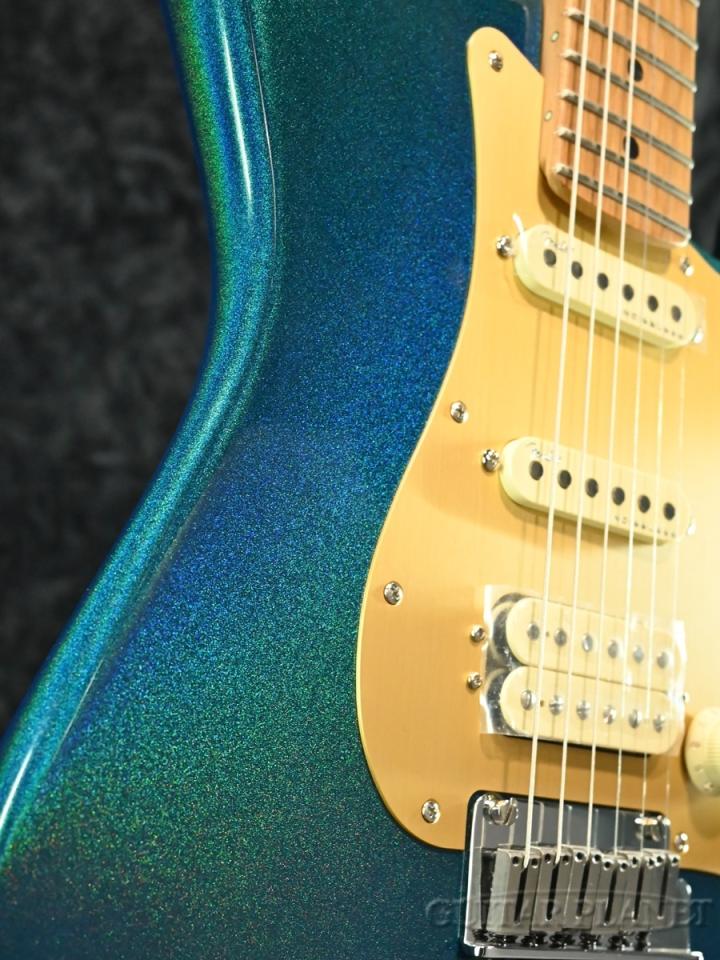 オーロラカラーとアノダイズドピックガード、ローステッドメイプルネックの組み合わせが最高にクールな1本。