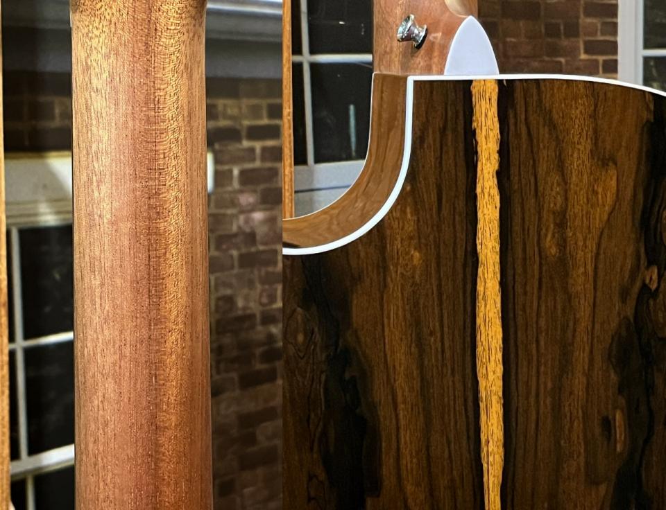 木目が極上のブラジリアンローズウッドに似ているジリコテをサイド&バックに使用したグランド・パフォーマンス・サイズのカッタウェイ仕様。