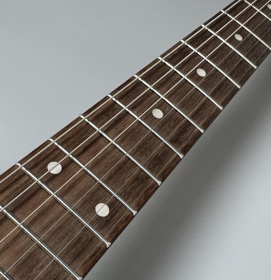 落ち着いたローズウッド指板と、ローステッドメイプルネックの組み合わせが美しい、クラシックで上品な1本です。