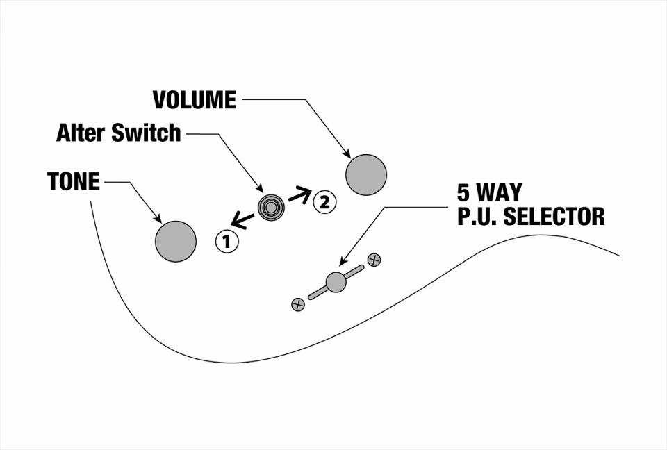 このミニスイッチの切り替えひとつで、自在にハムバッカー・モードとシングルコイル・モードへ切り替えられ、10パターンのサウンド・バリエーションを奏でられます。