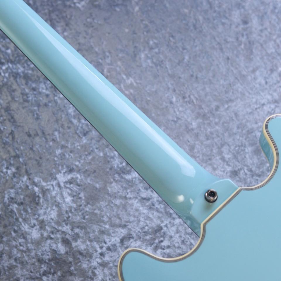 セミホロー構造のボディーは、メイプル材のボディートップ及びサイド・バックを採用。