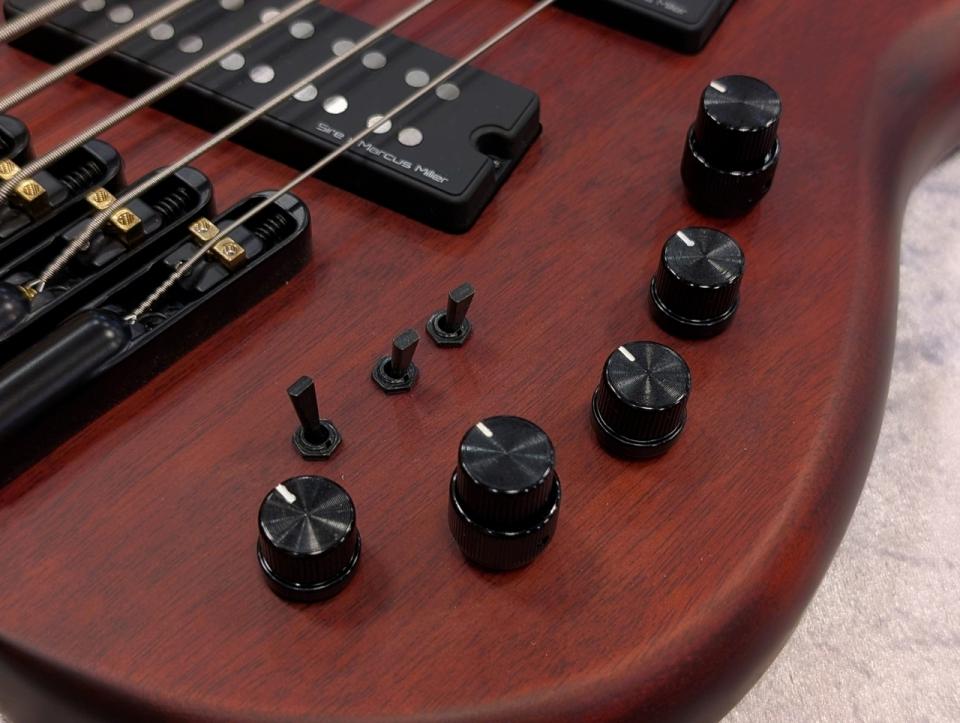 9Vバッテリー2つで駆動するコントロールにはMID FREQ付3バンドイコライザー、ピックアップのシリーズ/パラレル/タップ切り替えスイッチ、アクティブ/パッシブ切り替えスイッチを搭載し、演奏者の意のままにサウンドメイクが可能。