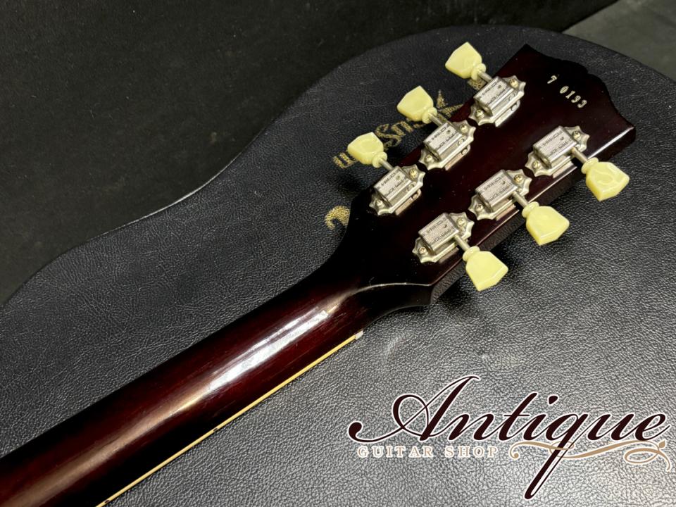 フィギュアドトップの1958&1959モデルに比べて生産本数が少ないながらも、その抜群のルックスから衰える事のない人気を誇る1957Gold Topモデル。昨今の円安やコロナ禍の影響もあり、新品&中古共に年々高騰を続けており、現在の相場感としては重量が重く、使用感の強い個体でも55万円前後となっております。今回の一本に関しては、同時期の個体の中でもズバ抜けて軽量かつ、年式の割にキレイなコンディションをキープしており、適正価格としては55万円以上当然の一本ながら、こちら前所有者様からのご厚意もあり、お値打ちな特別価格にてご案内させて頂く事となりました。是非一度お試し頂きたい素晴らしいサウンドの一本となっておりますので、お気になりました方は是非この機会をお見逃しなく。