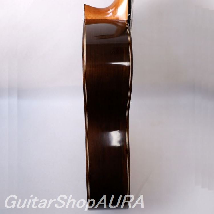 全面セラックニス仕上げで、糸巻きにはルブナー製を装着。ネックはわずかに順反りの標準的な状態で、演奏性は良好、フレットの摩耗もほとんど見られません。弦高は1弦 2.8mm、6弦 3.6mmに調整されており、サドルの余剰も約1.5mm残されているため、今後の調整にも対応可能です。弦の張りは比較的柔らかく、弾きやすいセッティングとなっています。