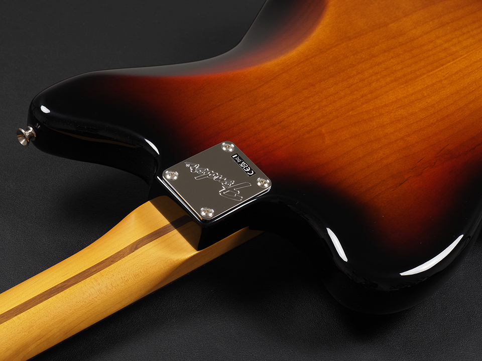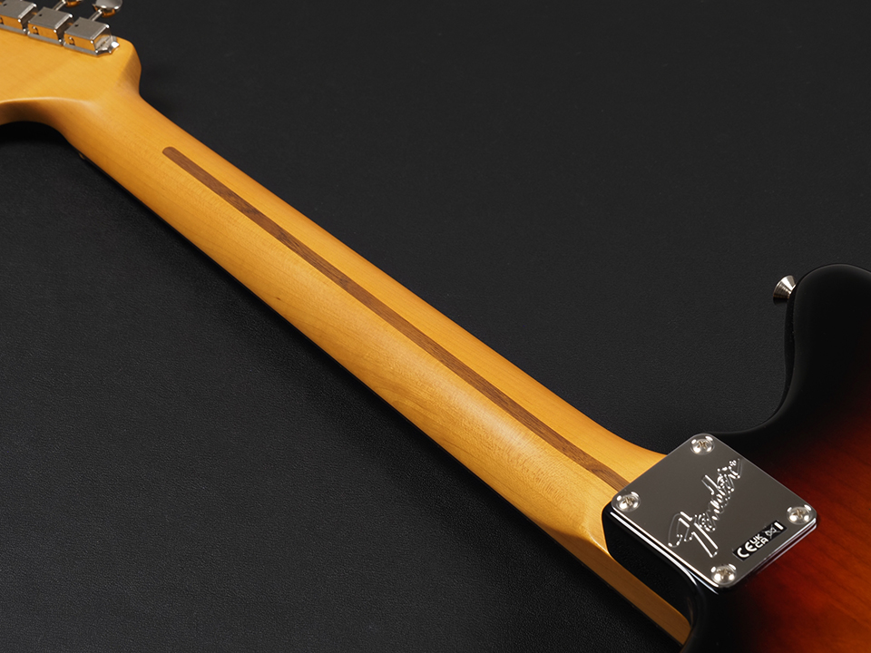 ネックにはサテン仕上げのModern “C”シェイプを採用し、指板は9.5インチラジアス&ミディアムジャンボフレット仕様で、快適なプレイアビリティを提供。チューニングの安定性に優れたFender ClassicGear Staggeredチューナーや、繊細なトーンコントロールを可能にするGreasebucketトーン回路など、細部まで現代的な改良が施されています。