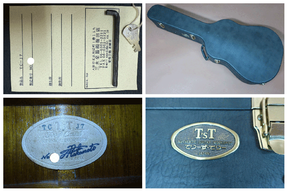 状態は製造から既に15年近く経過しておりますが、使用感も少なくペグの金属劣化も僅かで輝いており、トップ左のウエスト横ぐらいに小さな打痕が見られますが、その他は光に翳してわかる程度の極軽微な擦り傷程度です。また高級ギターの証でもあるラッカー塗装のウェザーチェッキングが画像では撮影できませんが光に翳して極薄く見られるぐらいです。サイド&バックも綺麗で目立つ打痕や傷は見られず、ボディエンドのバインディングの角に軽い打痕が有りますが触ってみてわかる程度です。ネック裏も綺麗で演奏性も問題がありません。ネックヒール裏にゴールドストラップピン装着済みでピックアップの取付や履歴もありません。弦長約650mm、ナット幅約43.5mm、弦高は12F6限で約2.3mm、1弦約2mm、サドルマージンも約3~4mm有りロッドの余裕も見られネックを含めプレヤビリティも良好です。オリジナル『てりーず・てりー』ハードケース、ご購入当時の保証書、レンチ、ケースキーも付属しております。”Terry’s Terry”の技術がそのまま投入され、指板に群生するSakuraインレイやボディ全体に施されたアバロン装飾などゴージャスなルックスとゴージャスなサウンドを堪能できるレアモデルです。近年は中古市場での流通も殆ど見られず入荷は超稀な逸品です。厳選された高級材を使用し、ボディ全体(サイドまで)アバロン装飾を施した稀少モデル。日頃の感謝を込めて100万円を切ったお勧め品です。是非この機会にご検討を頂ければ幸いです。お見逃しなく!