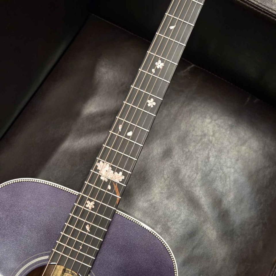 2025年 One Day Guitar Show の”冬夜桜” 冬に咲く桜をモチーフとしたモデル。本モデルは冬の夜をイメージした”冬夜桜”のデザインを施しています。