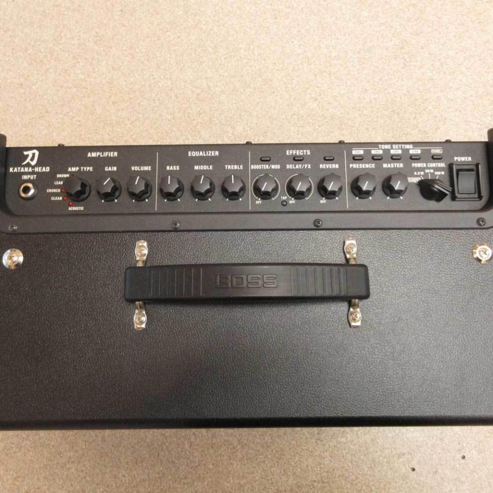 BOSS KATANA-HEADは、100Wの出力を備えたコンパクトなギター・ヘッド・アンプです。KATANAアンプを小型ヘッド・アンプに凝縮し、さらに単体での音色確認や練習も可能な、5インチ(12㎝)の小型スピーカーを搭載。