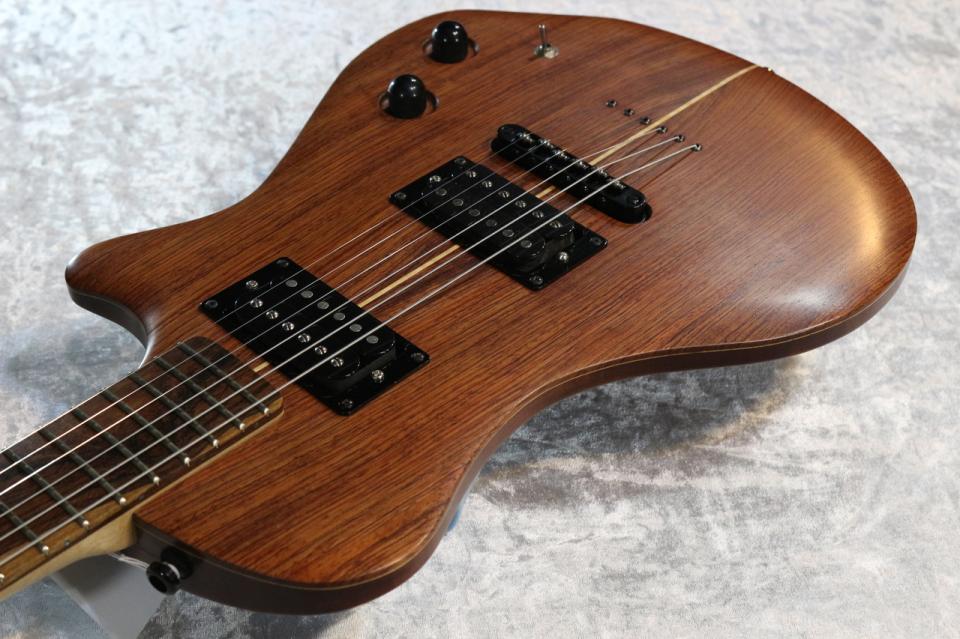 小ぶりなソリッドボディでありながら、どこかアコースティックな雰囲気も感じる個性的な一本となっております。