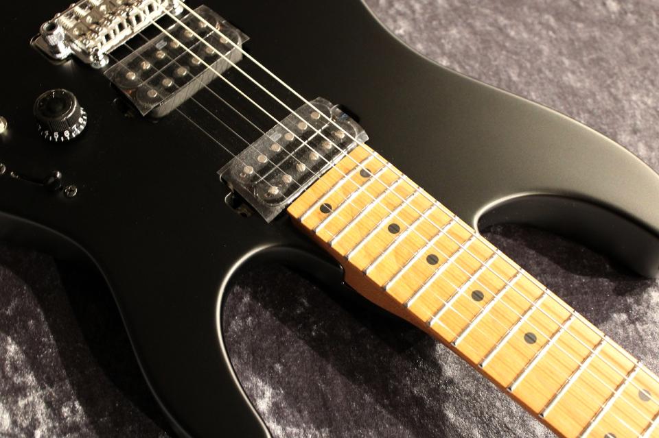 24フレット、HH配列・ミニスイッチ搭載のサウンドバリエーション、エルゴノミックに加工されたボディのカッタウェイ等、昨今のエレキギターに求められる演奏性やサウンドを高い水準で網羅し数々のプロミュージシャンに愛用されているこちらのモデルですが、今回は人気カラーである Black Flatが入荷致しました!!