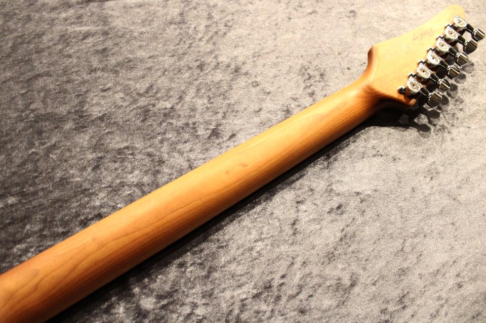 チューニングの安定性に大きく貢献するナットの滑りの良さと、ビンテージ・ギターの様なレゾナンスを実現しています。フレットはクラウンの幅2.7mm/高さ1.4mm、Hv220のステンレス製を使用。メンテナンス製に優れ、音の立ち上がりが早く、コード弾きでも分離が良く、ノート弾きでもクリアな出音を特徴としています。