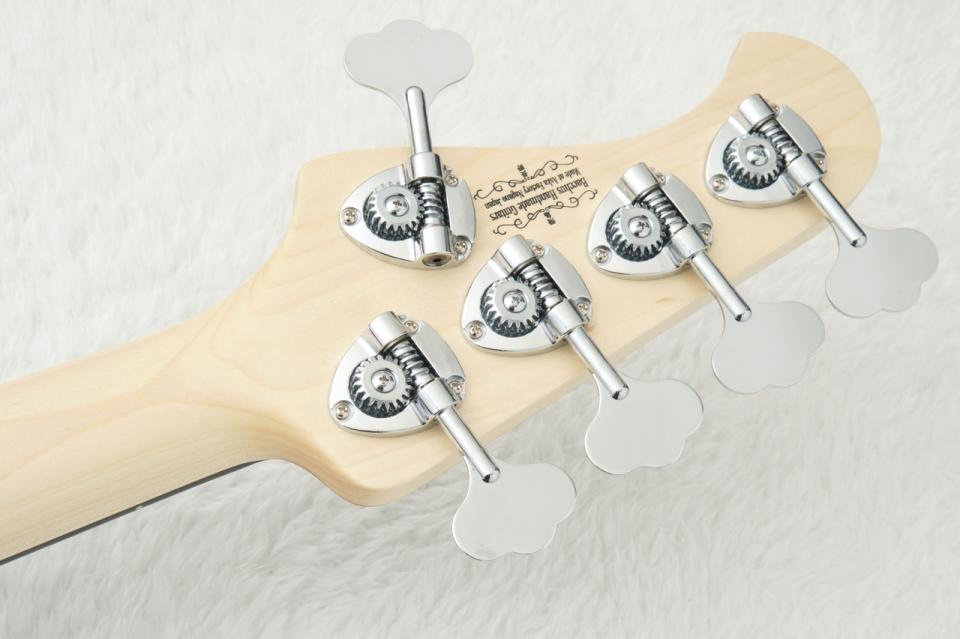 ピックアップには5弦用の「Bacchus JB ALV?-5」を搭載。 トーンノブをプルアップすることで2つのピックアップを直列接続する「ターボスイッチ」も装備しており、擬似的なハムバッキング・サウンドによるパワフルな音色も瞬時に呼び出せます。