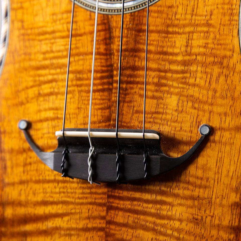 ボディにはプレミアムグレードのハワイアンコアを贅沢に使用しています。ハワイアンコアならではの明るさに加えて、この楽器の独特な形状と張られているナイロン弦の特性も相まって、丸みとノスタルジーを感じさせる音色です。